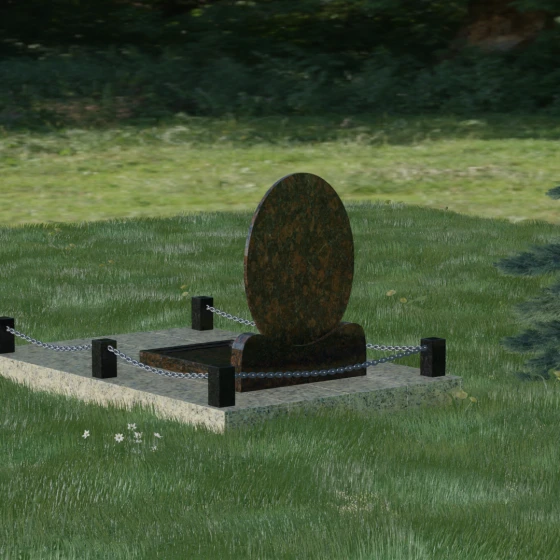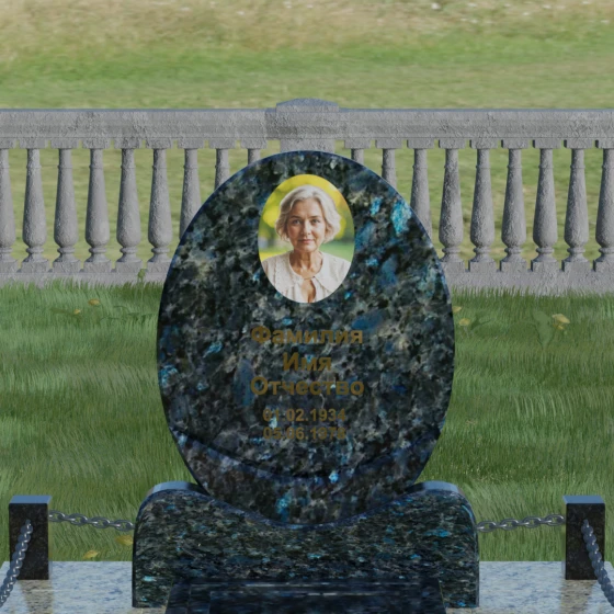 Данное ритуальное изделие притягивает взгляд своей совершенной гармонией и мягкостью линий. В основе композиции лежит безупречный овал — символ вечности, завершенности и бесконечного круговорота жизни. В отличие от строгих прямоугольных форм, эта стела выглядит более одухотворенно и спокойно, привнося на место захоронения атмосферу умиротворения. Особое внимание заслуживает художественная обработка основания: овальная плита плавно переходит в изящную подставку с мягкими «плечами» или волнообразными изгибами, которые создают надежную опору для всей конструкции. Каждая грань камня проходит многоступенчатую ручную и станочную обработку, что позволяет добиться идеальной гладкости. Отсутствие острых углов делает надгробие визуально легким, несмотря на значительный вес натурального камня.