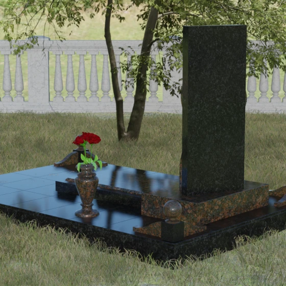 Для того чтобы мемориал максимально точно отражал характер ушедшего человека, данная модель доступна в восьми вариантах исполнения. Вы можете выбрать классическую глубину гранита Габбро-диабаз, благородную зелень Балтик грин, небесное сияние Блю Перл или огненную энергетику Лезниковского камня. Также доступны текстуры Амфиболита, Дымовского и Мансуровского гранитов, а для придания особой чистоты и света композицию можно выполнить из белоснежного мрамора Тассо. Такое разнообразие позволяет играть на контрастах, сочетая два вида камня (например, черный и красный или черный и белый), что делает памятный знак уникальным.