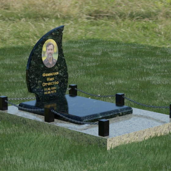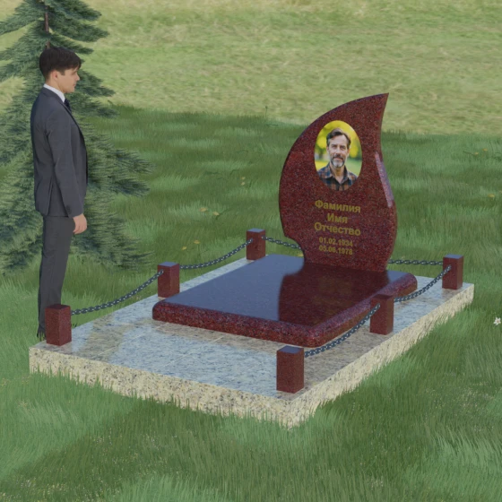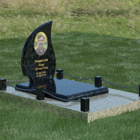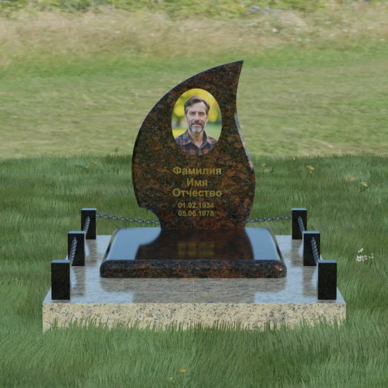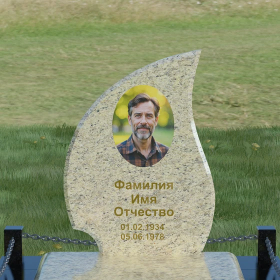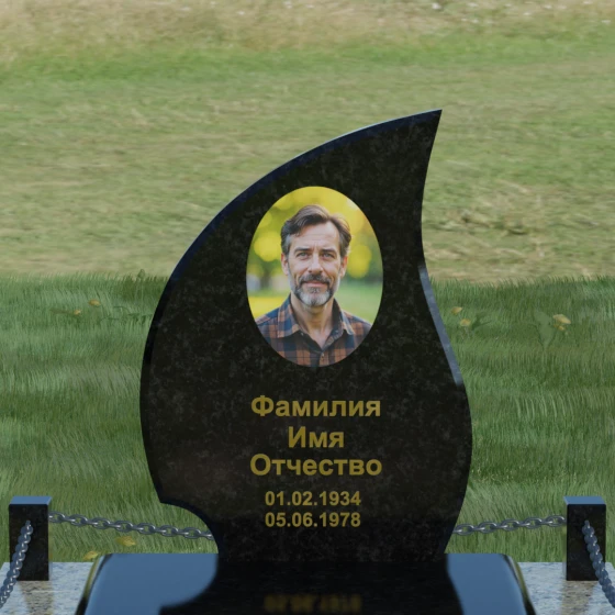 Кому подойдет: Данная модель является универсальным решением. Благодаря плавным изгибам и форме «пламени», она часто выбирается для оформления женских захоронений, олицетворяя нежность и скорбь. В то же время, строгость линий и массивность основания позволяют устанавливать этот памятник на могилах мужчин, подчеркивая их силу духа и статус. Выбор одного из 8 видов камня поможет дополнительно индивидуализировать мемориал: например, темный Габбро подчеркнет строгость, а светлый Мансуровский гранит или мрамор Тассо — чистоту и светлую память об ушедшем человеке.