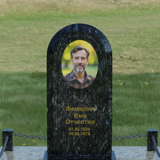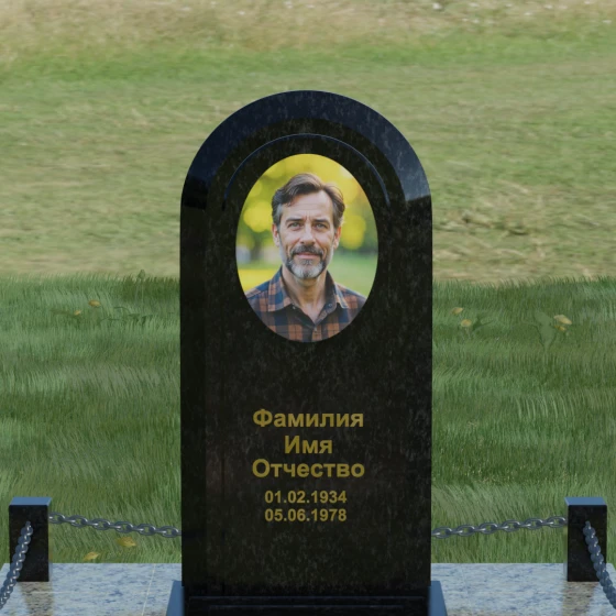 Конструкция стелы предусматривает идеальное центрирование портрета внутри резного овала. Такое расположение фокусирует внимание на лице, делая образ более выразительным и живым. Текст, нанесенный золоченой гравировкой или глубоким пескоструйным методом в нижней части плиты, дополняет композицию, не перегружая ее. Лаконичность формы позволяет использовать как классическую гравировку, так и современные керамические вставки высокого разрешения.