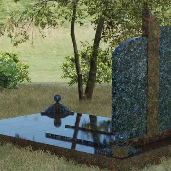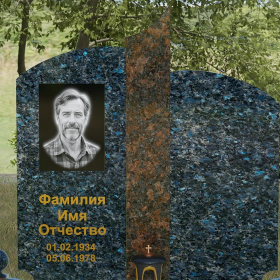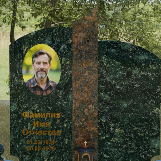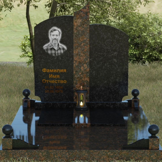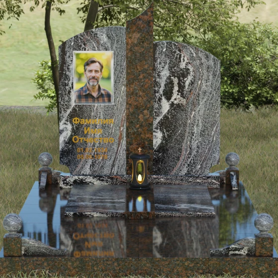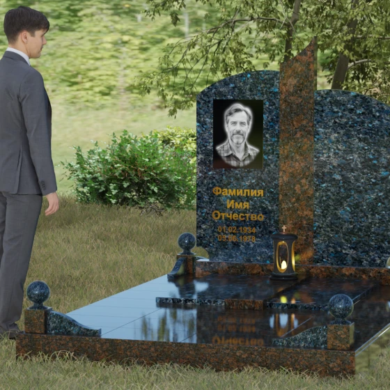 Чтобы мемориал максимально точно отражал характер ушедшего близкого человека, мы предлагаем выполнение этой модели в 8 различных цветовых решениях. Вы можете выбрать классическую строгость гранита Габбро-диабаз, благородную зелень Балтик грин или небесное мерцание Блю Перл. Для создания более теплых композиций идеально подойдет гранит Дымовский или насыщенный красный Лезниковский. Если вы хотите подчеркнуть чистоту и светлую память, обратите внимание на белоснежный мрамор Тассо или лаконичный гранит Мансуровский. Сочетание основного темного камня с контрастной вставкой из гранита Амфиболит позволит создать уникальный визуальный ритм.