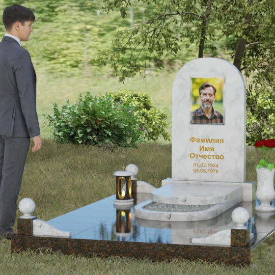 Мы предлагаем этот гранитный монумент в восьми различных цветовых решениях, что позволяет индивидуализировать мемориал, отразив в камне характер ушедшего человека. На выбор доступны семь видов элитного гранита: строгий и глубокий Габбро-диабаз, благородный коричнево-бордовый Дымовский, величественный красный Лезниковский, белоснежный с темными включениями Мансуровский, экзотический изумрудный Балтик грин, уникальный пятнистый Амфиболит и сияющий синими искрами лабрадорит Блю Перл. Также модель может быть выполнена из изысканного светлого мрамора Тассо, который ценится за свою чистоту и аристократизм. Такое многообразие позволяет создать как строгий мужской образ, так и более нежную, светлую женскую композицию.