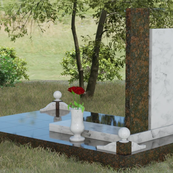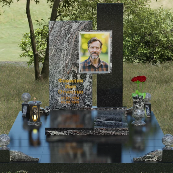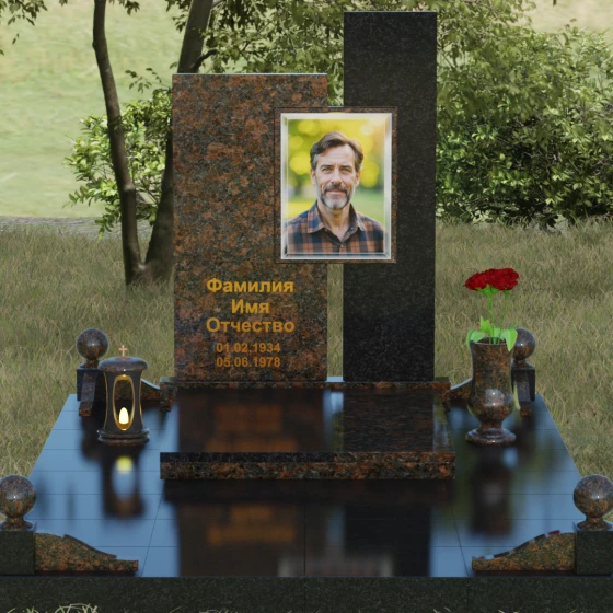 - Аксессуары: В комплект включена изящная гранитная ваза для живых цветов и закрытая лампада (лампадка), которая позволит сохранить огонь памяти в любую погоду.
