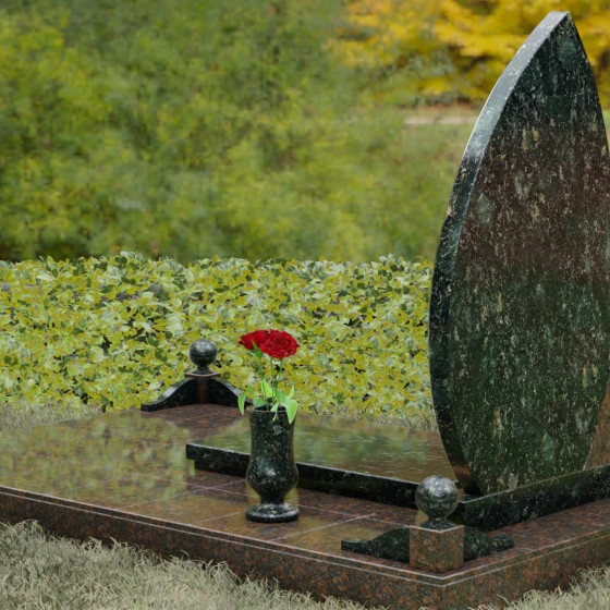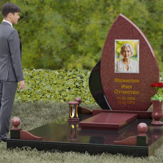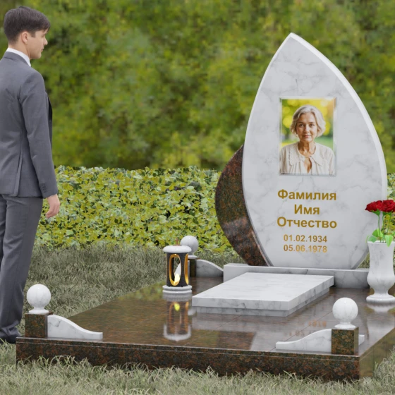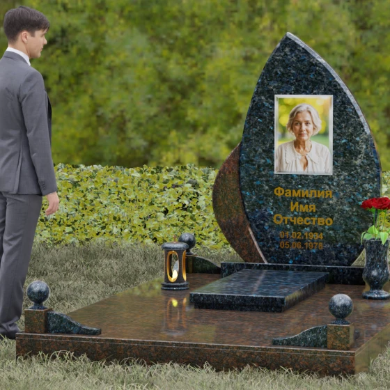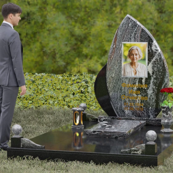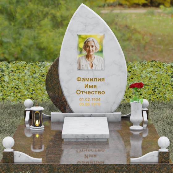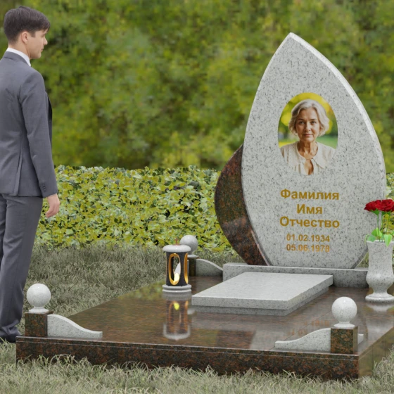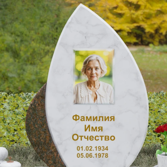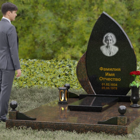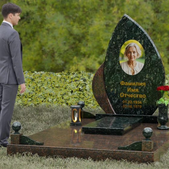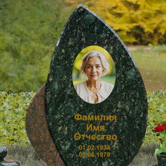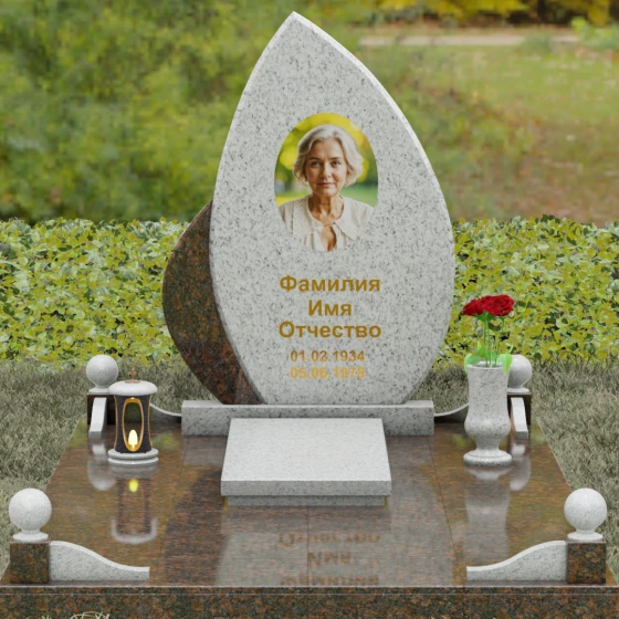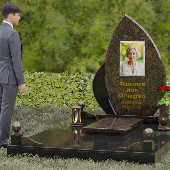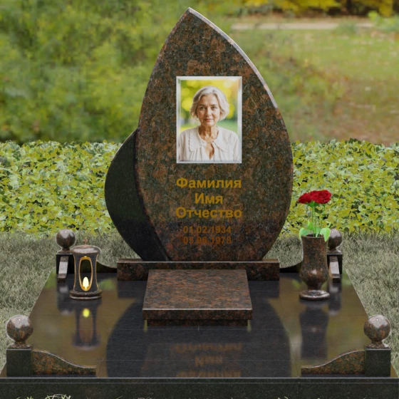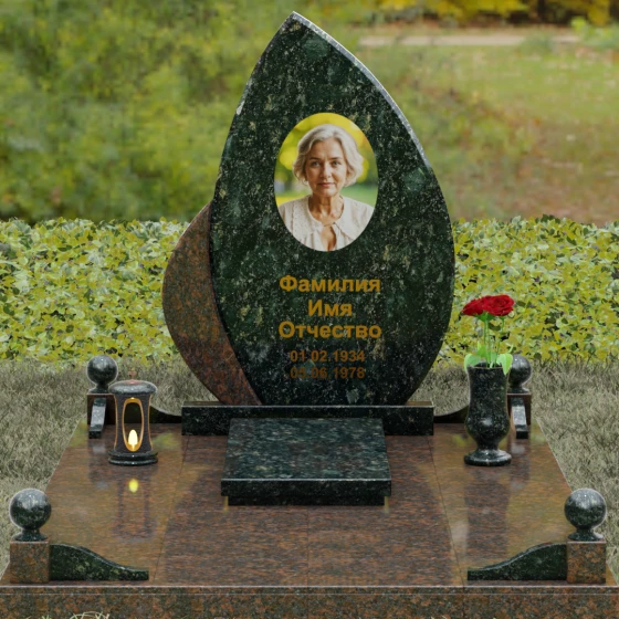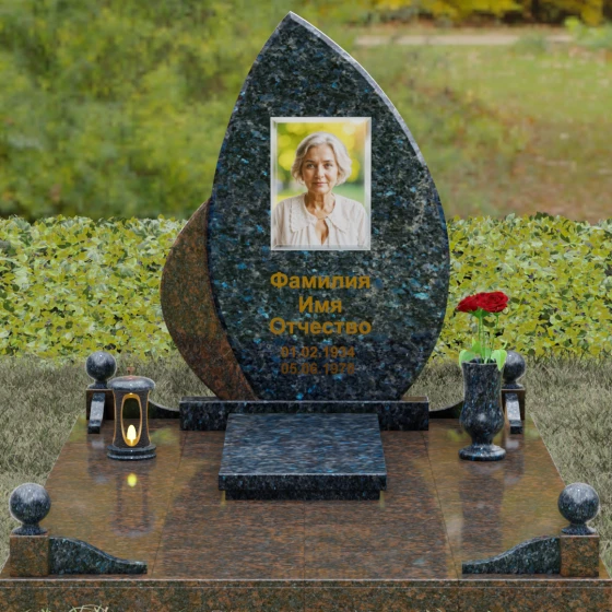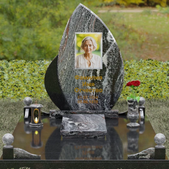 Форма этого изделия диктует свои правила эстетики. Широкое поле центральной части идеально подходит для размещения портрета: будь то классическая художественная гравировка, передающая тончайшие полутона, или современный фотопортрет в стекле, который будет смотреться как драгоценный медальон на фоне темного камня. Золоченая гравировка текста в нижней части подчеркивает элитарный статус надгробия. Для создания уникального характера мы предлагаем исполнение в 8 цветовых решениях. Вы можете выбрать классический черный гранит Габбро-диабаз, глубокий зеленый гранит Балтик Грин, мерцающий синевой Блю Перл или строгий Дымовский. Также доступны гранит амфиболит, Лезниковский, светлый Мансуровский и ослепительно белый мрамор Тассо. Такое многообразие позволяет подобрать камень, который наиболее точно передаст черты характера ушедшего человека.