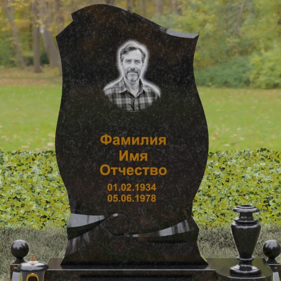 Широкое полотно стелы предоставляет архитектору множество вариантов для художественного оформления. Форма монумента идеально подходит для размещения крупного портрета — будь то классическая гравировка, обеспечивающая вечное изображение, или современная фотокерамика в изящной овальной нише. Свободное пространство ниже позволяет нанести глубокую каллиграфическую надпись, которая может быть покрыта сусальным золотом или специальным составом под бронзу. Золотистые буквы особенно эффектно смотрятся на темных сортах камня, создавая благородный контраст с зеркальной поверхностью гранита.