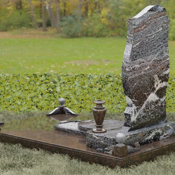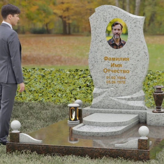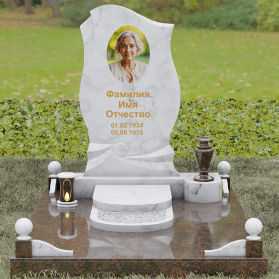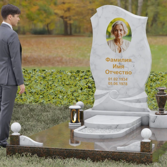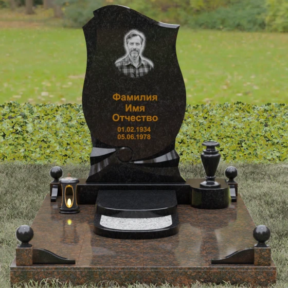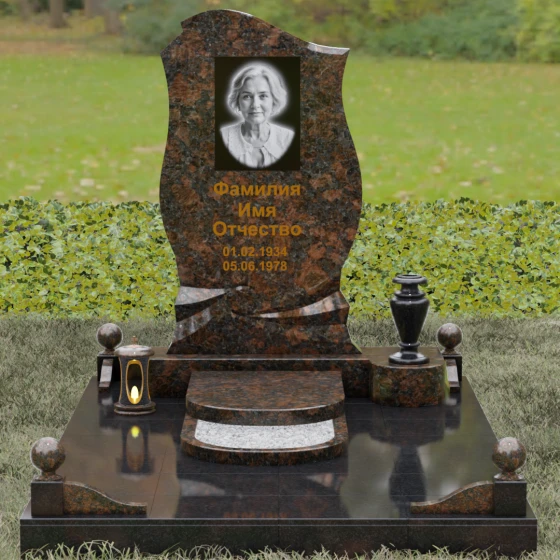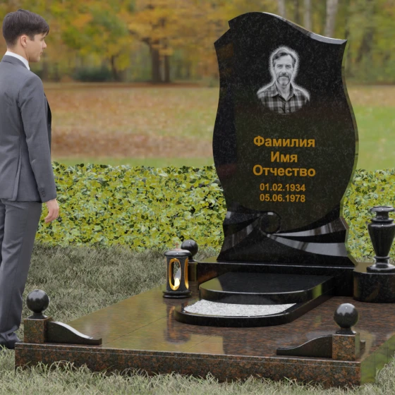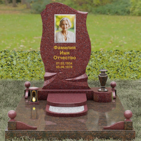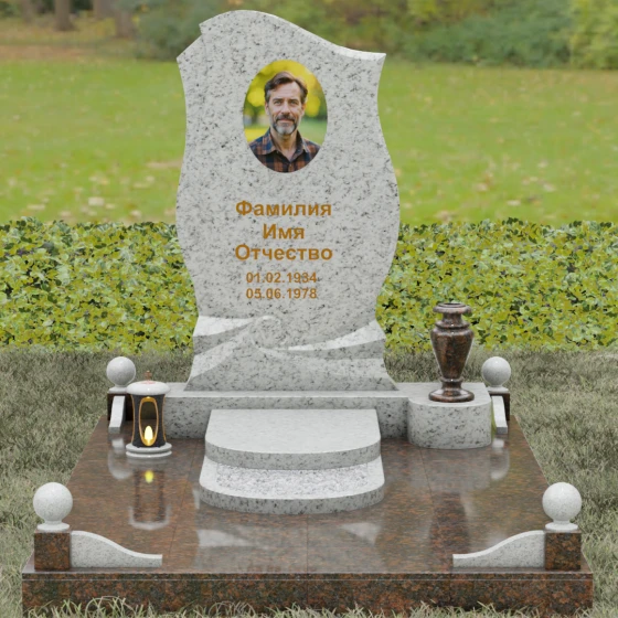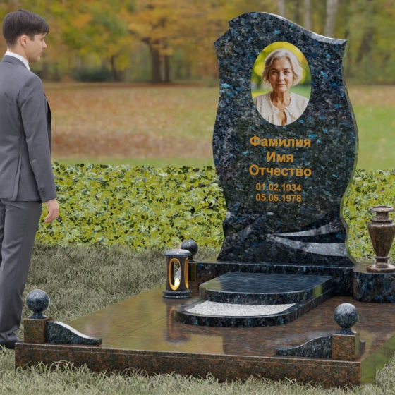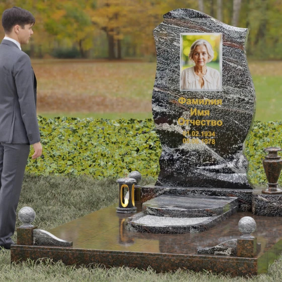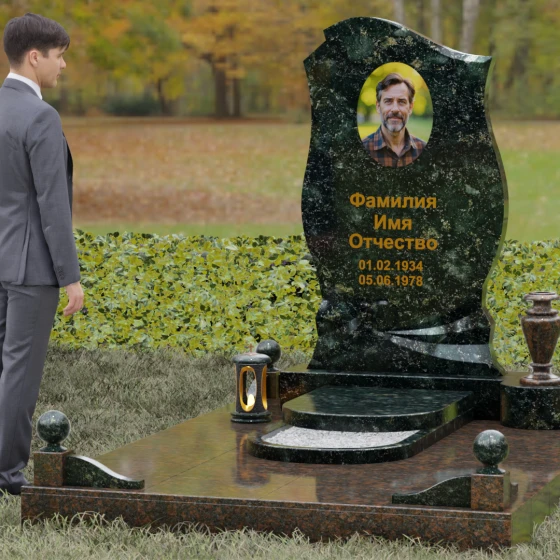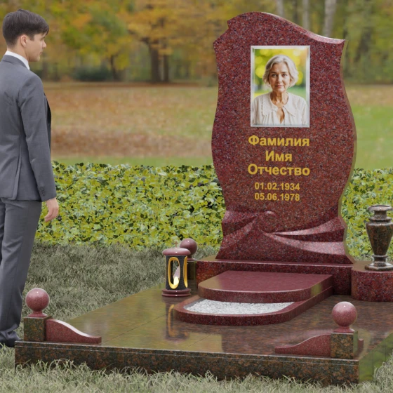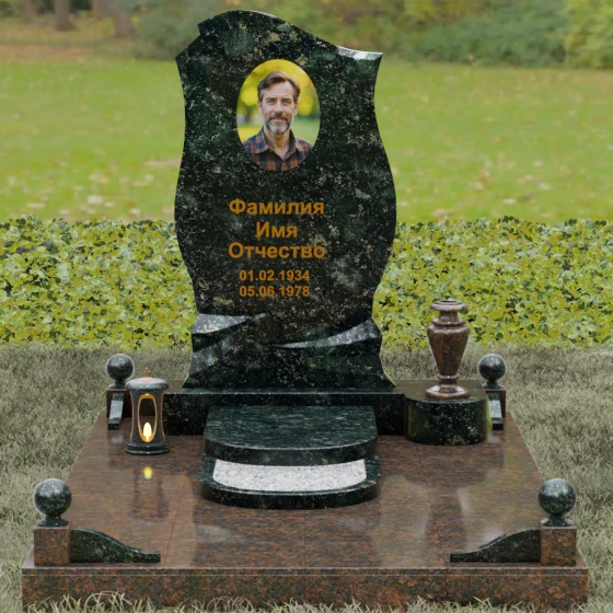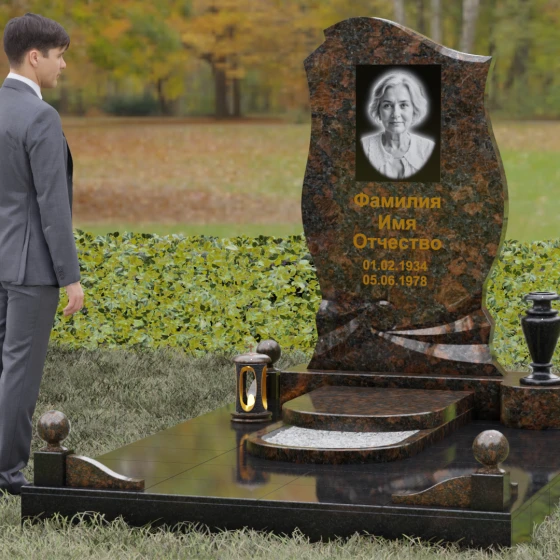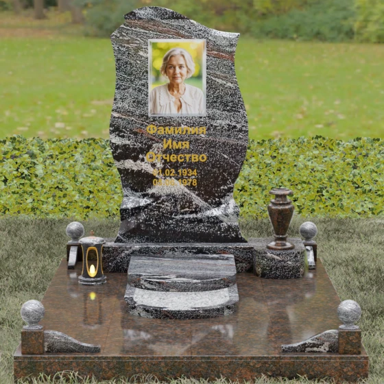 Этот мемориальный ансамбль станет достойным воплощением вашей любви и уважения. Сочетание надежного основания, продуманного декора в виде каменных сфер и лампады, а также уникальной формы резной стелы создает атмосферу незыблемого спокойствия и вечной памяти, которая не подвластна времени.