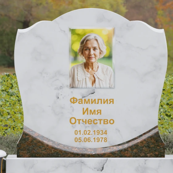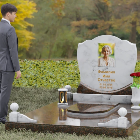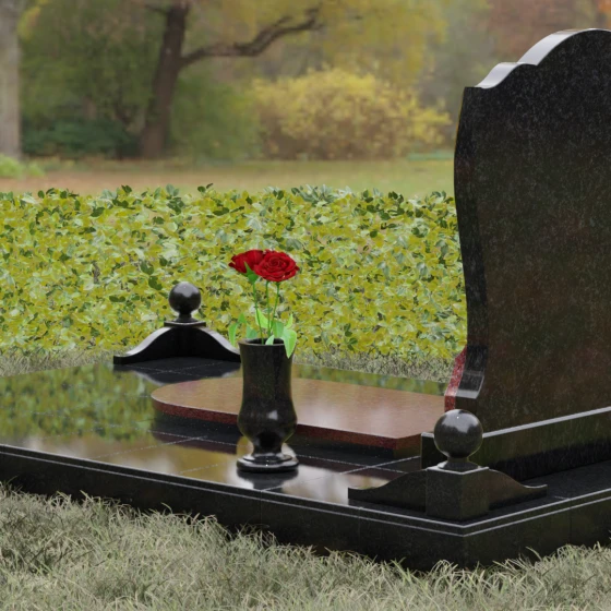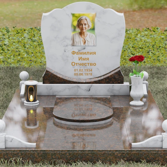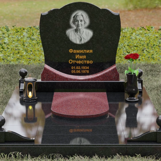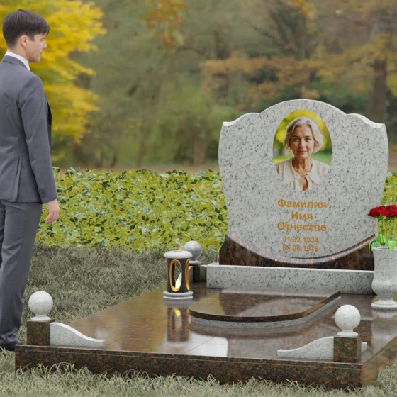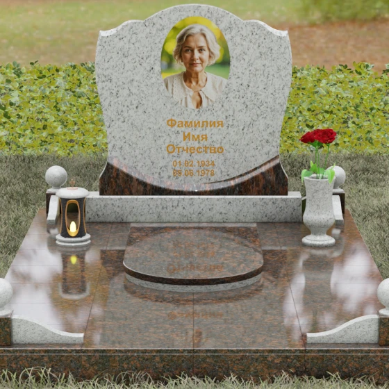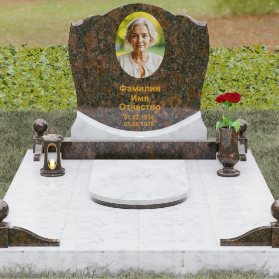 Каждая деталь этой модели несет в себе скрытый смысл. Плавные изгибы верхней части стелы олицетворяют спокойствие и умиротворение, смягчая строгую геометрию массивного основания. Сочетание двух видов камня — темного, как символ скорби, и цветного, как символ тепла человеческой души — создает глубокий эмоциональный контраст. Шары на столбиках ограждения издревле считаются знаками бесконечности, подчеркивая, что жизнь продолжается в памяти потомков, а сам комплекс становится неприступной крепостью, хранящей покой ушедшего.