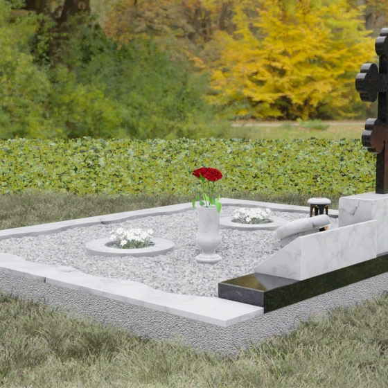 Данное надгробие спроектировано как полноценная архитектурная форма для семейного захоронения. Оно включает в себя не только стелы, но и комплексное благоустройство участка, обеспечивающее надежность и эстетичный вид на десятилетия:
