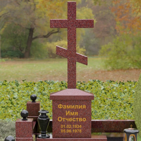 Память о близком человеке — это не только тихая скорбь, но и стремление запечатлеть образ ушедшего в формах, неподвластных времени. Создание мемориала требует особого подхода, где каждый элемент — от основания до вершины — несет в себе глубокий смысл и эстетическую завершенность. Данный мемориальный комплекс представляет собой не просто место поклонения, а полноценное архитектурное высказывание, в котором строгость линий гармонично сочетается с торжественностью православной символики. Это подношение вечности, воплощенное в благородном камне, призванное хранить тепло воспоминаний на протяжении многих десятилетий.