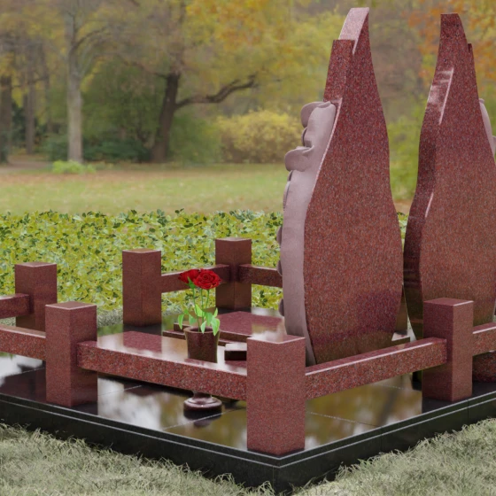 - Комплектация: Две стелы, тумба, надгробные плиты, цоколь, столбики, перекладины, ваза и лампада.