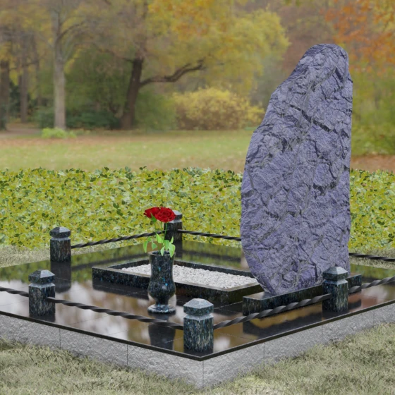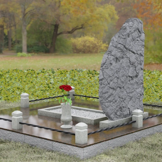 Форма стелы, напоминающая фрагмент незыблемой горы, символизирует стойкость духа и вечный покой. «Скала» — это олицетворение природной защиты и непоколебимости памяти, которую не в силах разрушить ни время, ни стихии. Это убежище души, обретшей тишину.