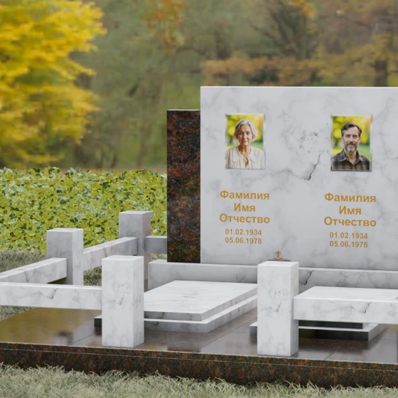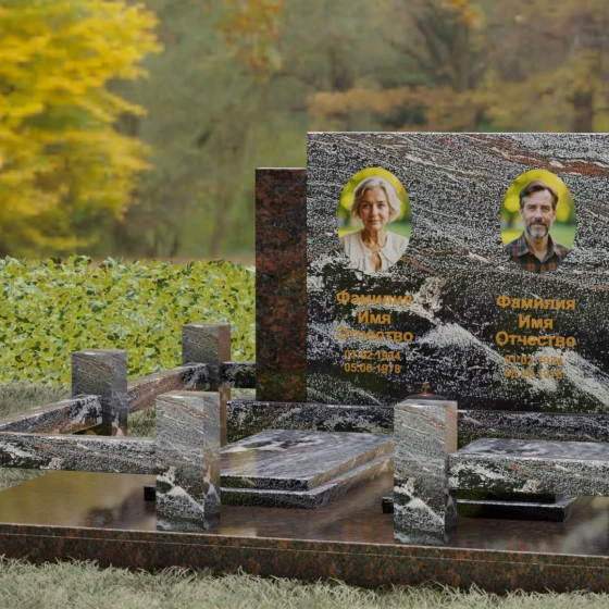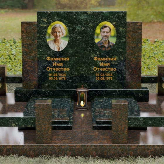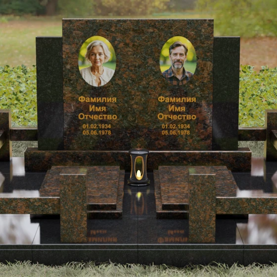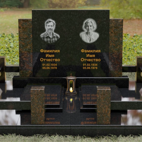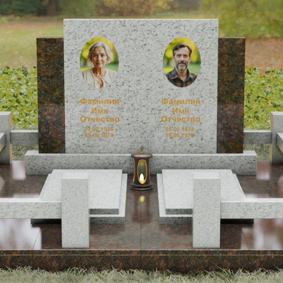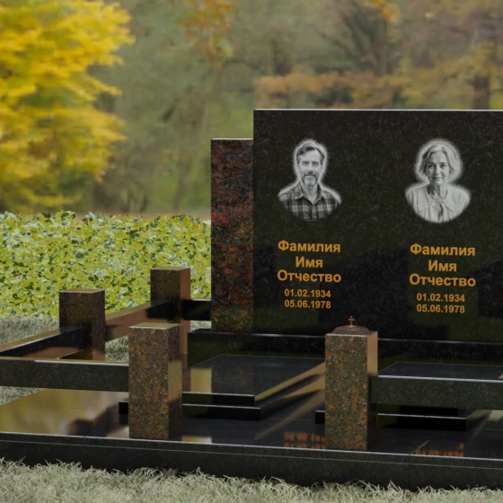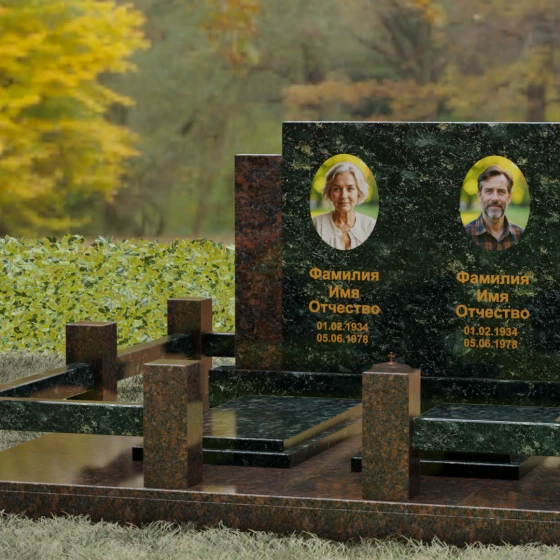 Данное ритуальное изделие представляет собой величественный мемориальный ансамбль, выполненный в лучших традициях архитектурного триптиха. В основе композиции лежит монументальность и незыблемость, призванные запечатлеть память о близких в вечном камне. Этот ансамбль олицетворяет собой торжественное спокойствие и надежность, превращая место захоронения в настоящий пантеон. Высокое качество исполнения каждой детали подчеркивает глубокое уважение к усопшим, создавая пространство, где время словно замирает перед лицом вечности.