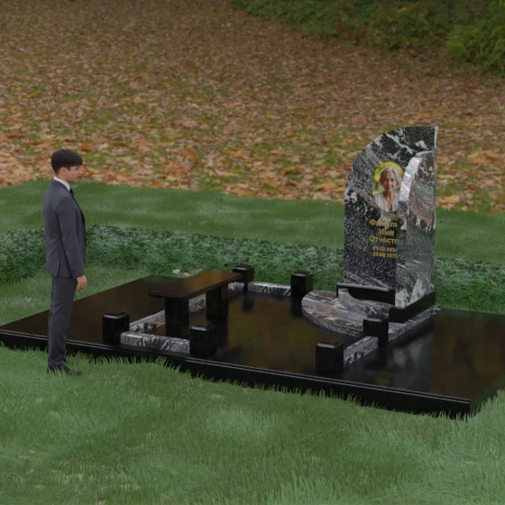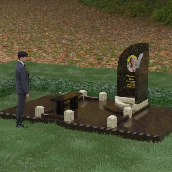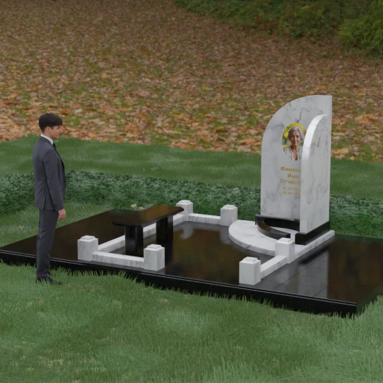 Кому подойдет: Данный ансамбль является универсальным и в то же время глубоко индивидуальным решением. Благодаря плавным изгибам стелы и возможности использования светлых вставок, он идеально подходит для оформления женского захоронения, символизируя нежность и светлую печаль. В то же время, масштабность конструкции и строгое мощение делают его достойным выбором для семейного мемориала или памятника уважаемому главе семьи. Это выбор тех, кто ценит современный европейский стиль, чистоту линий и хочет обустроить место памяти максимально достойно и на века.