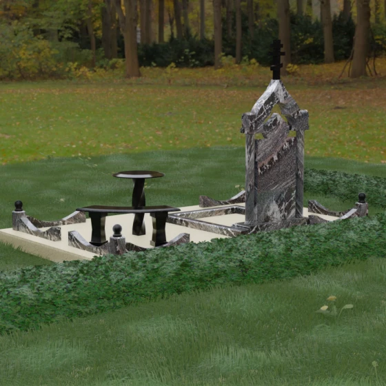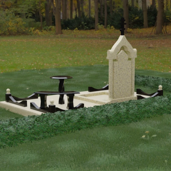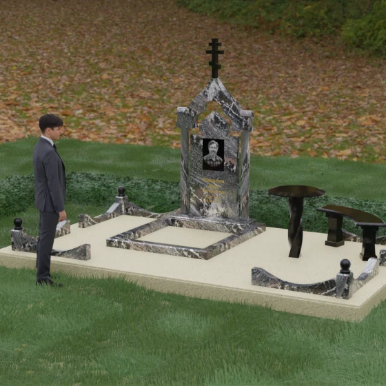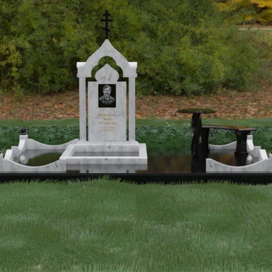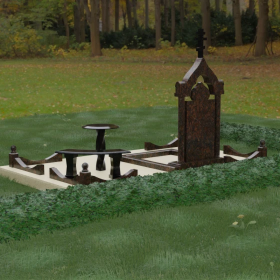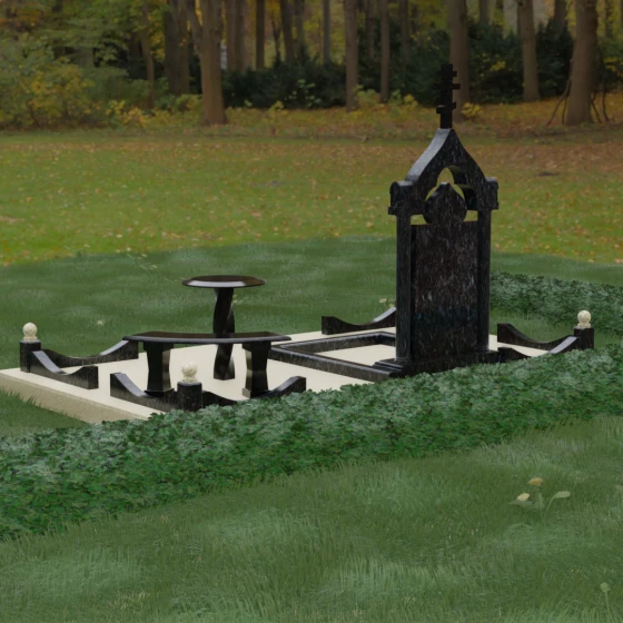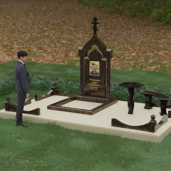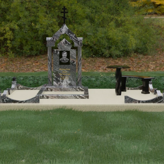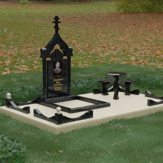 В завершение стоит отметить, что этот мемориальный ансамбль представляет собой идеальный баланс между сложной архитектурной формой и практичностью. Монументальность конструкции в сочетании с изяществом резных деталей делает её достойным выбором для тех, кто желает увековечить память близкого человека в благородном и долговечном камне.