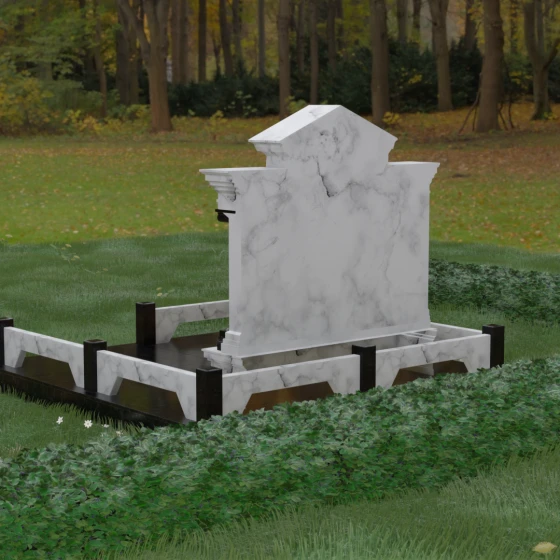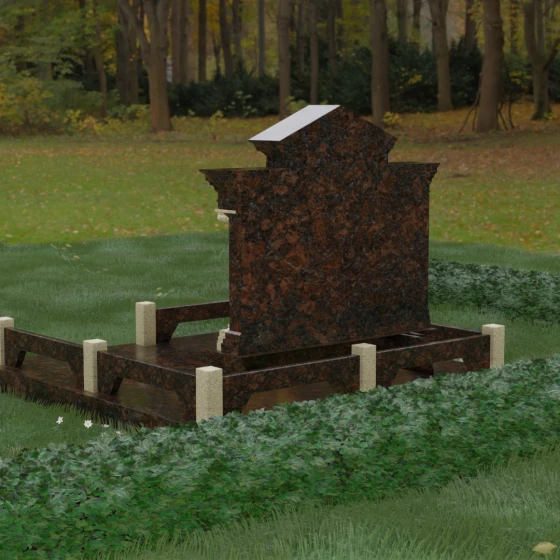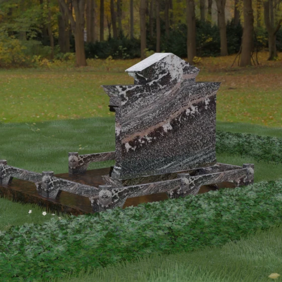 Это надгробие из натурального камня создано для тех, кто ценит монументальность и долговечность. Основным материалом здесь выступает гранит — камень, обладающий феноменальной плотностью и минимальным водопоглощением. В отличие от искусственных материалов, натуральная порода не боится резких перепадов температур, сильных морозов или палящего солнца. Зеркальная полировка не тускнеет со временем, а лишь приобретает особое благородство. Мы предлагаем этот проект в 8 уникальных цветовых решениях, что позволяет наделить мемориал особым характером. Вы можете выбрать глубокий черный Габбро-диабаз, благородный серый Мансуровский гранит, насыщенный красный Лезниковский, строгий Дымовский, изысканный Блю Перл с лабрадоризацией, лесной Балтик Грин, текстурный Амфиболит или девственно чистый белый мрамор Тассо. Сочетание двух разных видов камня, как показано на модели, создает необходимый объем и акцентирует внимание на деталях резьбы.