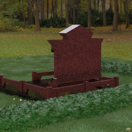 Завершает общую композицию продуманная система благоустройства. Использование сплошной надгробной плиты вместо открытого грунта не только придает участку законченный и ухоженный вид, но и значительно упрощает уход за местом захоронения. Каменное основание и цоколь надежно защищают памятник от перекосов почвы, гарантируя, что величественная арка сохранит свою идеальную вертикаль на века. Этот мемориальный комплекс — достойный способ выразить глубокое уважение к истории семьи и сохранить память о близких в монументальной и эстетически совершенной форме.