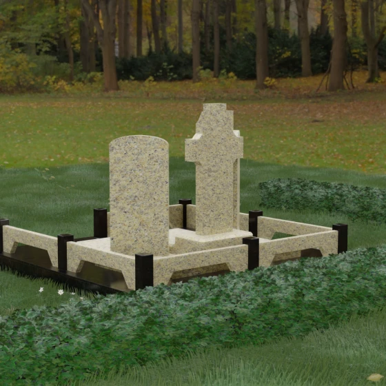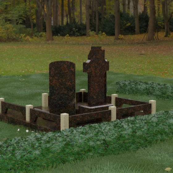 Данная модель пропитана символикой покоя и духовного покровительства. Православный крест, расположенный в центре и возвышающийся над стелами, олицетворяет защиту и надежду на вечную жизнь. Симметрия композиции говорит о равноправии и взаимной поддержке супругов или близких родственников при жизни.