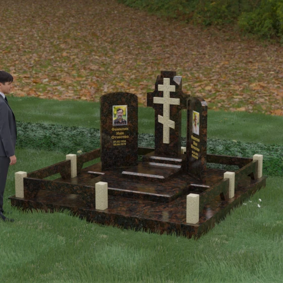 Создание достойного места погребения — это архитектурная задача, требующая баланса между монументальностью и глубоким личным смыслом. Данная мемориальная композиция призвана увековечить память о двух близких людях, объединяя их души под сенью священного символа. В основе концепции лежит идея неразрывной связи, гармонии и защиты, которую дарует вера, воплощенная в камне высшего качества. Каждый элемент этого ансамбля продуман до миллиметра, чтобы создать пространство, свободное от суеты, где время словно замирает в зеркальном отражении гранитных граней.