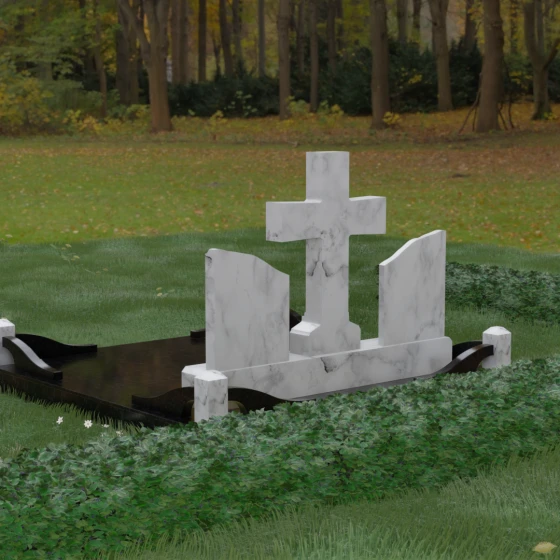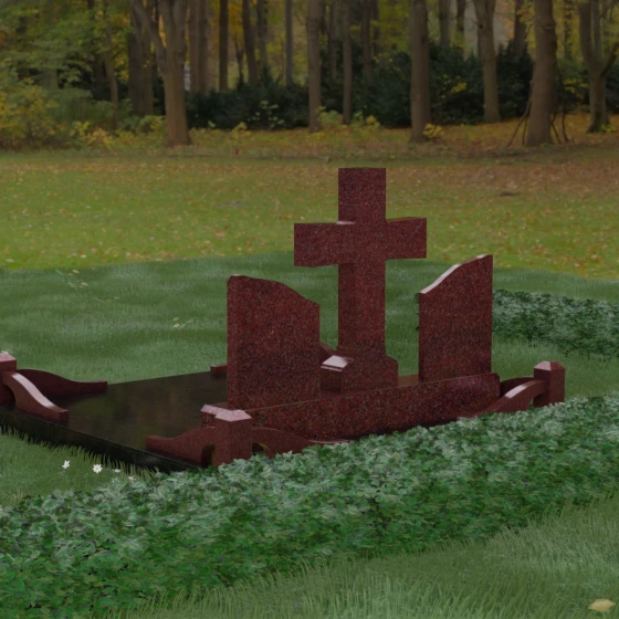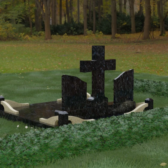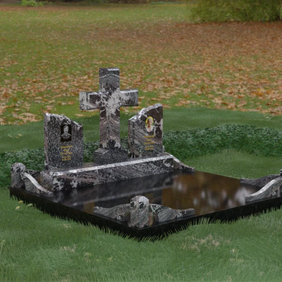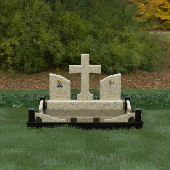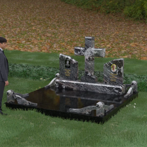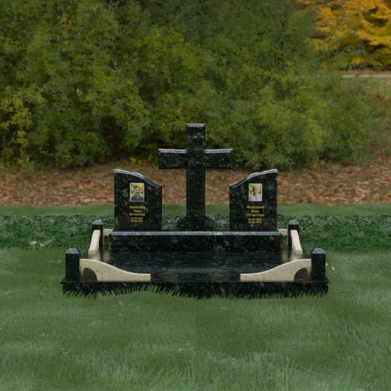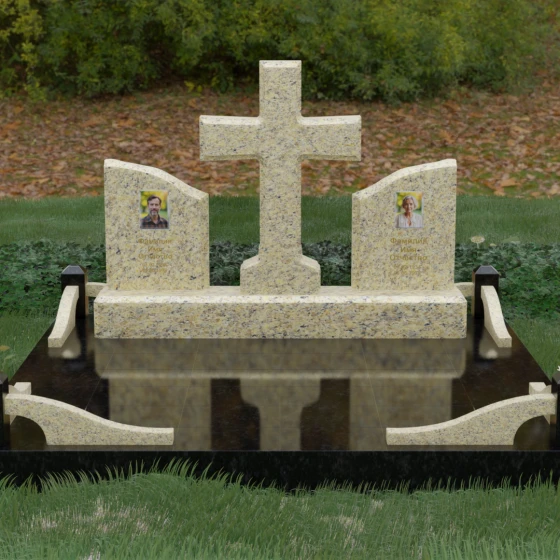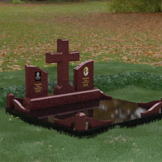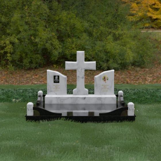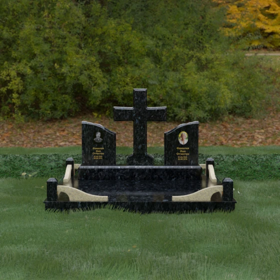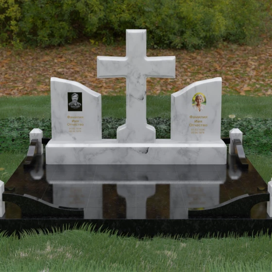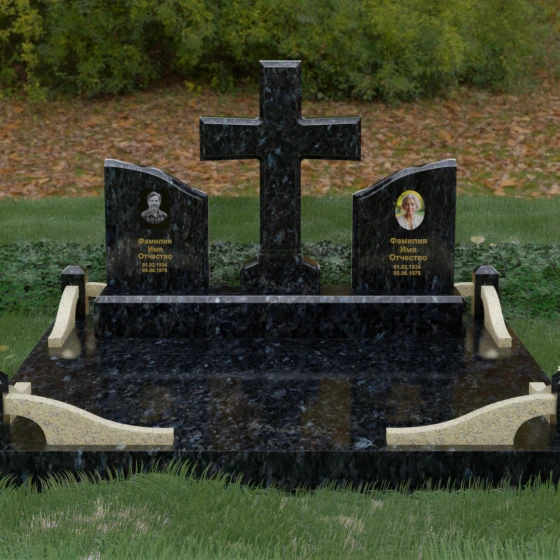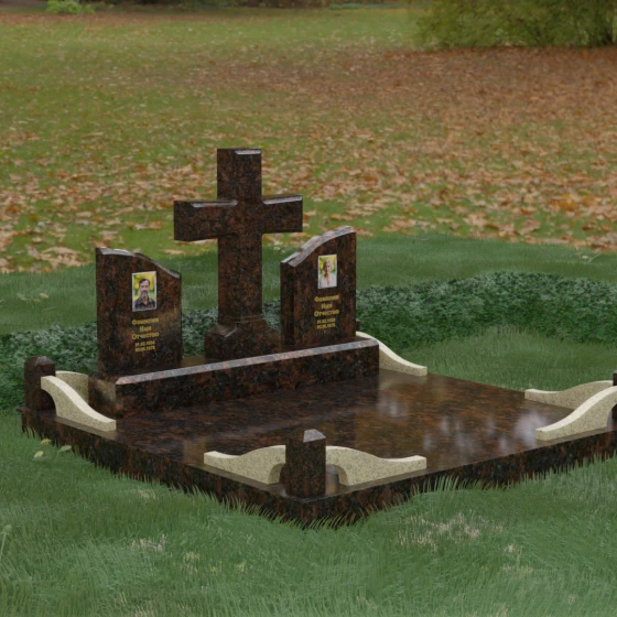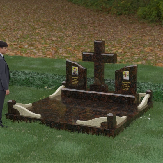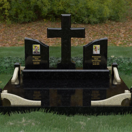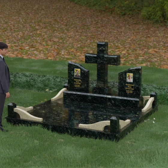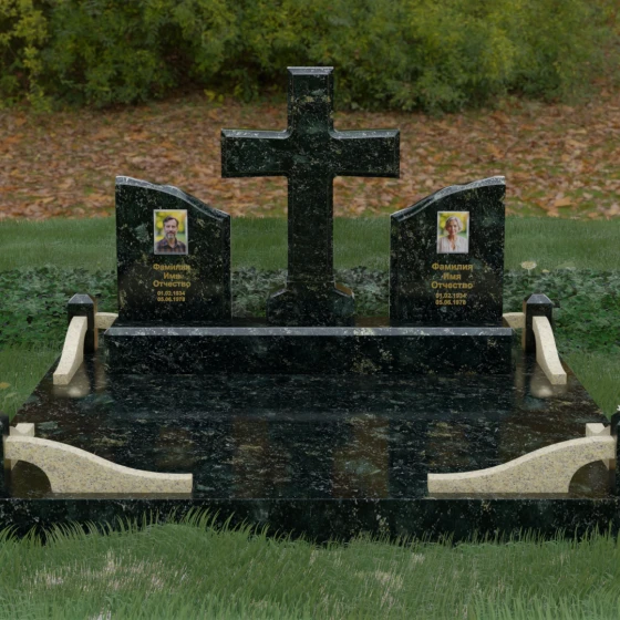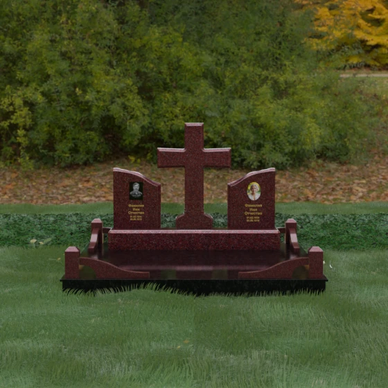 Кому подойдет: Данный архитектурный комплекс идеально подходит для парного захоронения (родителям, супругам). Благодаря наличию центрального креста и двух отдельных плит, он объединяет близких людей в общую композицию, сохраняя при этом индивидуальность каждого. Это выбор тех, кто стремится создать достойное родовое место памяти, сочетающее в себе религиозные традиции, современную европейскую эстетику и непревзойденную долговечность природного камня.