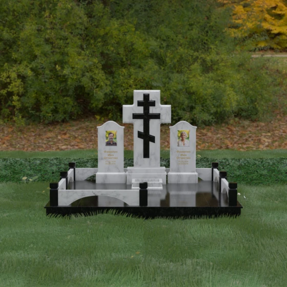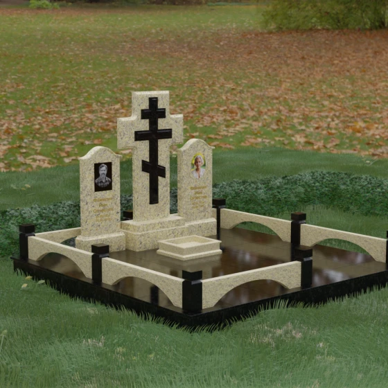 Геометрия этого комплекса наполнена глубокими смыслами. Центральный крест доминирует над всей композицией, выступая как символ надежды и духовной защиты ушедших душ. Парные боковые стелы подчеркивают неразрывную связь между близкими людьми, указывая на то, что их союз продолжается и за пределами земного бытия. Арочные формы ограждения перекликаются с церковным зодчеством, символизируя небесные врата. Отсутствие резких, агрессивных углов в оформлении основных плит настраивает посетителей на смирение и умиротворение, напоминая о том, что смерть — это лишь переход в состояние вечного сна.