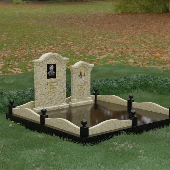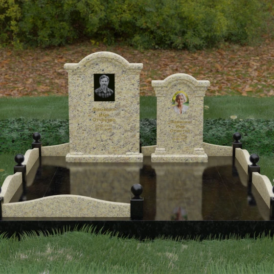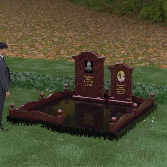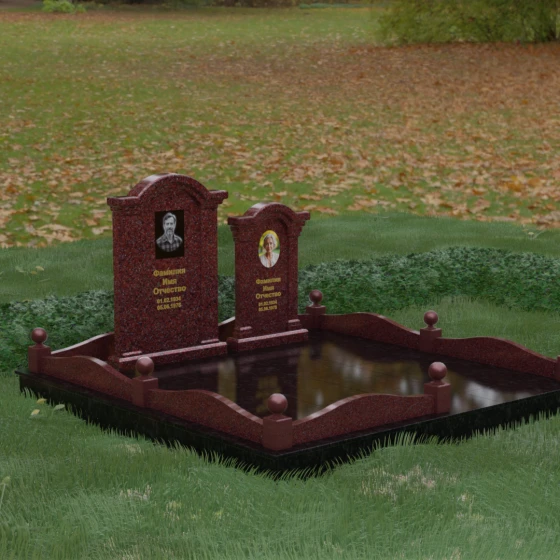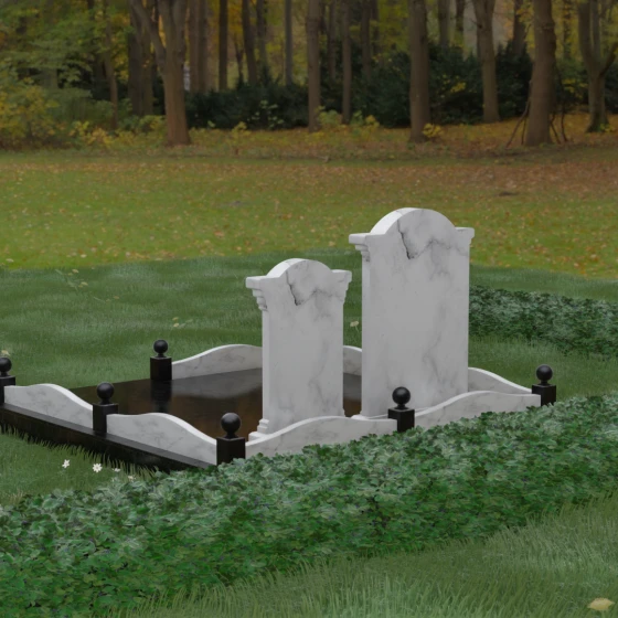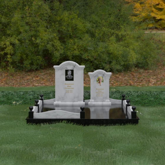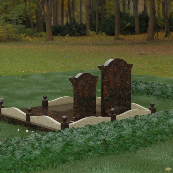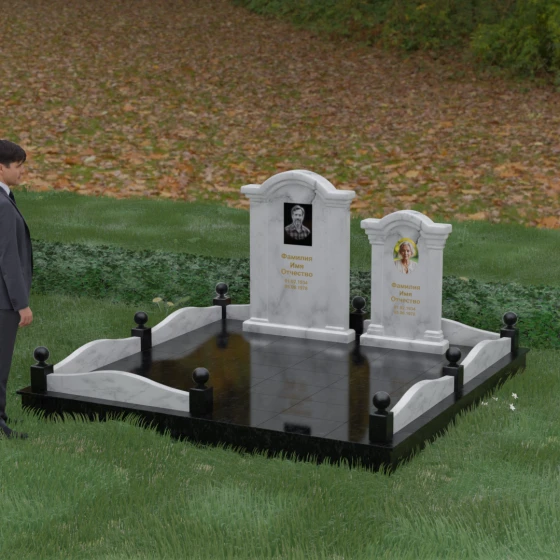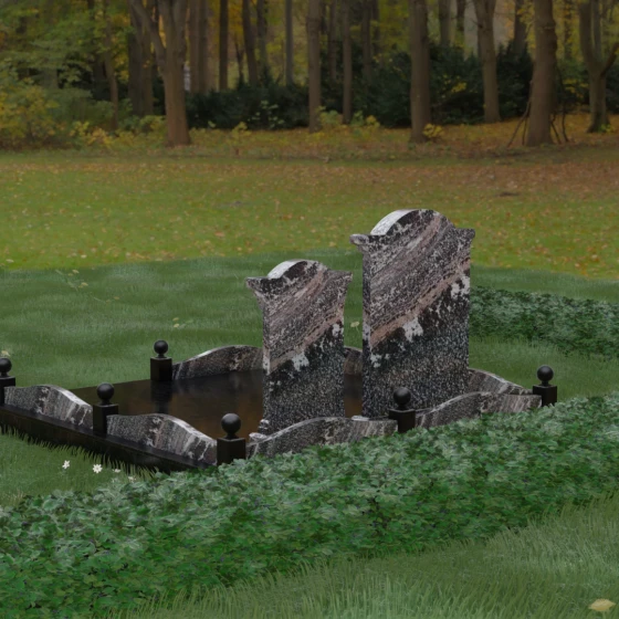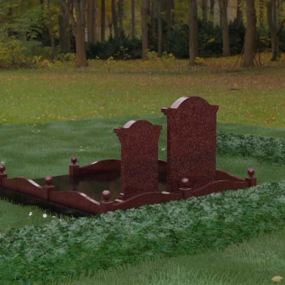 Геометрия этой модели наполнена глубоким смыслом. Разновеликие стелы символизируют преемственность поколений или неразрывную связь супругов, где одна фигура гармонично дополняет другую. Купольные вершины напоминают своды храма, олицетворяя небесную защиту, покой и вечное пристанище души. Плавные линии наверший смягчают строгость вертикальных плит, принося ощущение утешения и умиротворения тем, кто приходит сюда почтить память родных людей.