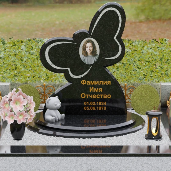 Кому подойдет: Данная модель является универсальным символом нежной привязанности и вечной души. Форма бабочки чаще всего выбирается для оформления захоронений молодых женщин, дочерей или сестер, подчеркивая их хрупкость, красоту и светлый след, оставленный в сердцах близких. В светлых тонах камня (например, в мраморе) изделие идеально подойдет для детского захоронения, символизируя чистоту ангельской души, а в темных гранитах станет величественным знаком памяти о яркой и неординарной творческой личности.