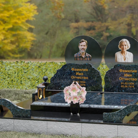 Геометрия стел с круглыми вставками идеально подходит для размещения портретов. Округлая форма фокуса притягивает взгляд к лицам, создавая эффект "окна в вечность". Здесь гармонично смотрится как классическая гравировка, так и цветная фотокерамика. Текст, нанесенный глубоким пескоструйным методом или выполненный в виде накладных букв, располагается в центральной части, оставаясь легко читаемым на фоне безупречной полировки. Мы понимаем, как важно сохранить каждую деталь образа, поэтому форма данного надгробия спроектирована так, чтобы художественное оформление выглядело максимально органично и статусно.