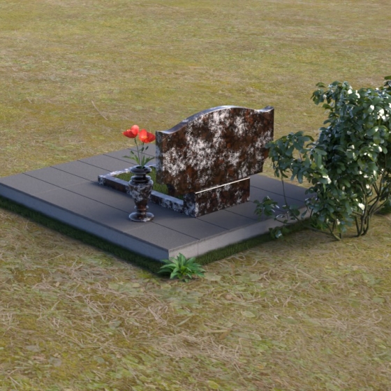 Этот гранитный монумент привлекает внимание своей плавной, обтекаемой формой. Верхняя часть надгробного сооружения представляет собой дугу с легким изгибом, напоминающим колыбель или волну, бережно укрывающую покой. Боковые грани скруглены, что придает памятнику мягкость и умиротворенность. Фаска, аккуратно снятая по периметру, подчеркивает четкость линий и добавляет изделию изысканности. Нижняя часть монумента выполнена в форме прямоугольника, создавая устойчивое основание и визуальный баланс. Дополнительная горизонтальная плита, расположенная на основании, добавляет композиции завершенность и предоставляет место для нанесения эпитафий или размещения цветов.