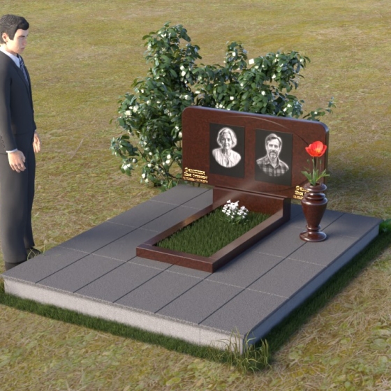 Этот ритуальное изделие – воплощение сдержанной элегантности и глубокого уважения. Прямоугольная стела с мягко скругленными углами создает ощущение завершенности и покоя. Верхняя часть памятника, словно рамка для воспоминаний, украшена выгравированными портретами. Полированная поверхность камня, подобно зеркалу, отражает свет, создавая игру бликов и теней, что придает глубину и объем изображениям. Горизонтальная плита под портретами добавляет композиции устойчивости и визуально расширяет пространство. Все элементы памятника объединены лаконичным дизайном, который говорит о достоинстве и вечной памяти.