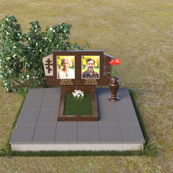 Оформление: Для этой формы надгробия идеально подойдет гравировка портретов в строгом, классическом стиле. Четкие линии и реалистичность изображения позволят сохранить в памяти облик усопших. Имена, отчества и даты жизни, выполненные элегантным шрифтом, дополнят композицию и придадут ей завершенный вид. Рекомендуется использовать шрифт с засечками, чтобы подчеркнуть торжественность момента.