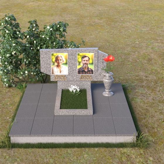 Памятник ПГ040 представляет собой композицию, в которой гармонично сочетаются строгие геометрические формы и плавные, умиротворяющие линии. Верхняя стела, выполненная из полированного гранита, словно зеркало, отражает небо и окружающий мир, создавая ощущение легкости и воздушности. Её верхний край имеет волнообразную форму, напоминающую о жизненном пути, полном взлетов и падений, но завершающемся в покое и гармонии. На поверхности стелы искусно выгравированы портреты, обрамленные лаконичными надписями, которые словно шепот времени, сохраняют память об ушедшем.