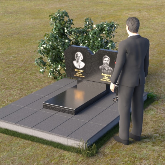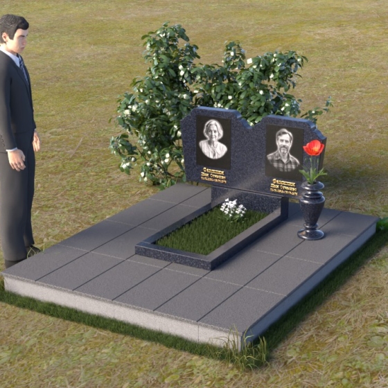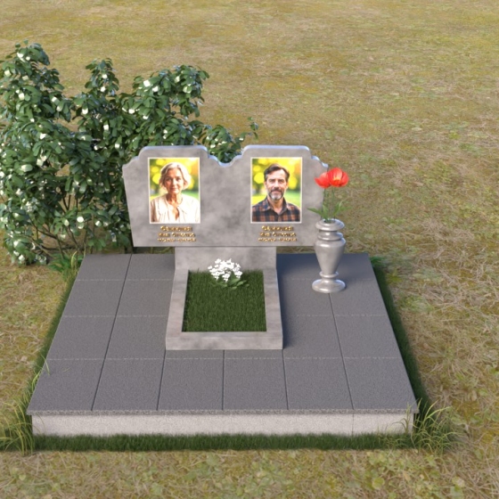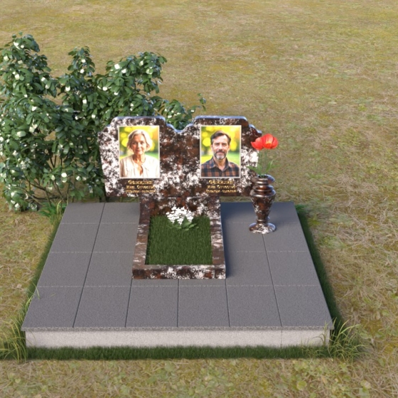 Форма стелы идеально подходит для размещения портретов усопших. Благодаря достаточно большой площади поверхности, можно разместить не только портреты, но и эпитафии, отражающие самые важные черты характера и жизненные ценности. Текст, выполненный методом гравировки, будет четким и долговечным. Вертикальное расположение стел позволяет акцентировать внимание на лицах ушедших, создавая ощущение их присутствия рядом. Наличие подставки под вазу позволяет украсить место захоронения живыми или искусственными цветами, которые добавят красок и жизни в мемориальную композицию. Красная роза, изображенная на одной из стел, символизирует любовь и память, которые навсегда останутся в сердцах близких.