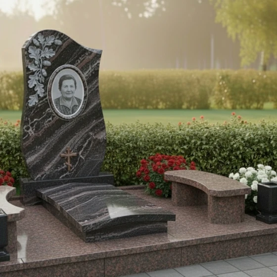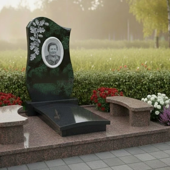 - Уход: Благодаря высококачественной полировке и плотной структуре гранита, уход за этим мемориальным комплексом минимален. Достаточно периодически протирать поверхности влажной тканью, чтобы сохранить их блеск и чистоту. Отсутствие открытого грунта на надгробной плите также значительно сокращает усилия по поддержанию порядка.