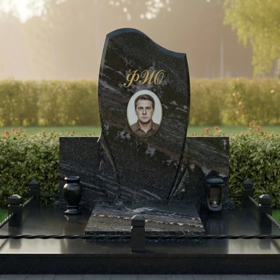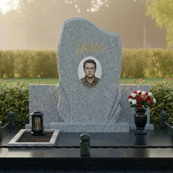 Кому подойдет: Данная модель станет идеальным выбором для тех, кто ищет баланс между классической монументальностью и современным дизайном. Благодаря своей универсальной, но выразительной форме, ансамбль подходит для оформления как мужских, так и женских захоронений. Плавные изгибы стелы и наличие лампады делают его особенно уместным для создания атмосферы духовного тепла и светлой печали. Это решение для семей, которые ценят архитектурную законченность и хотят избавить себя от хлопот по постоянному благоустройству территории, выбрав надежность и премиальную эстетику на века.
