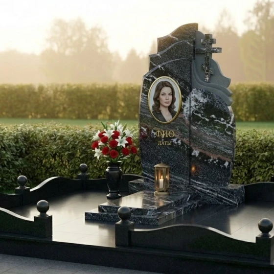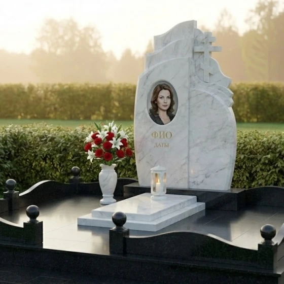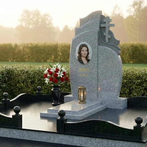 Кому подойдет: Эта модель является универсальным и в то же время статусным решением. Благодаря своей гармоничной геометрии и наличию канонического креста, она идеально подходит для оформления православного захоронения. Она станет достойным выбором как для мужчины, так и для женщины, подчеркивая глубокую привязанность семьи. Этот мемориальный комплекс выбирают те, кто стремится создать на участке атмосферу умиротворения, эстетической чистоты и долговечности, избавляя себя от хлопот по ежегодному обновлению территории.