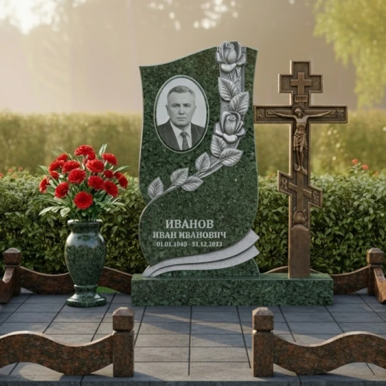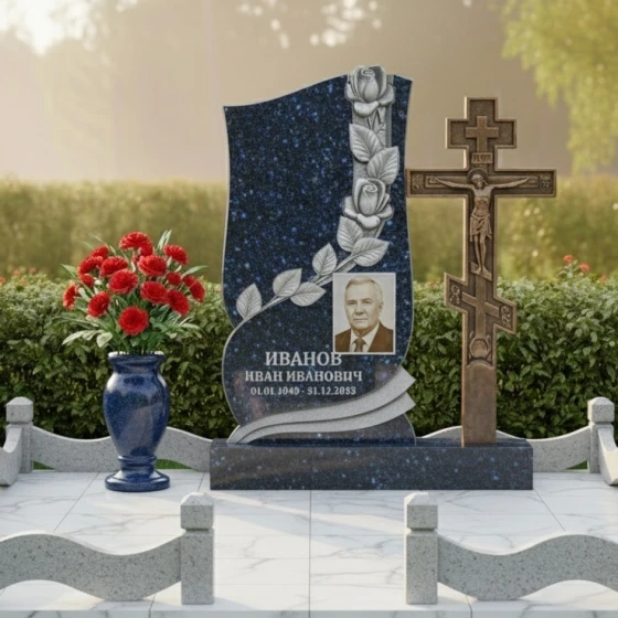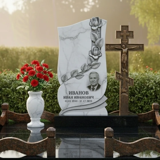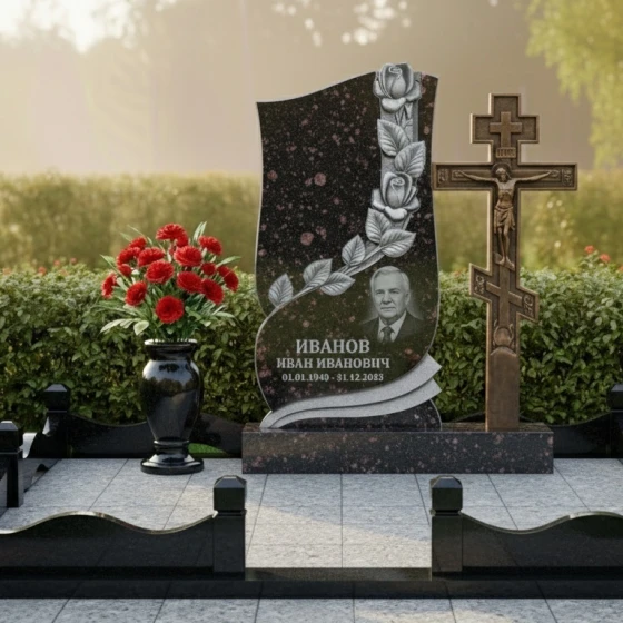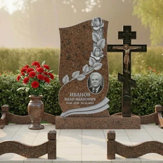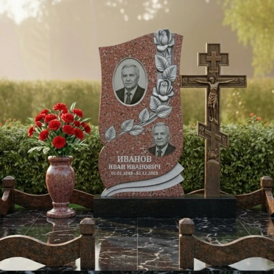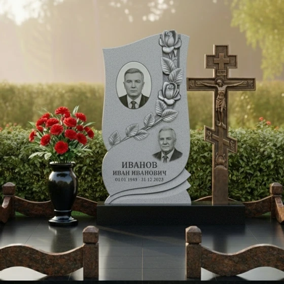 - Простота ухода: Благодаря сплошной надгробной плите и высококачественной полировке, уход за мемориальной композицией сводится к минимуму. Достаточно периодически протирать её влажной тканью, чтобы поддерживать безупречный внешний вид.