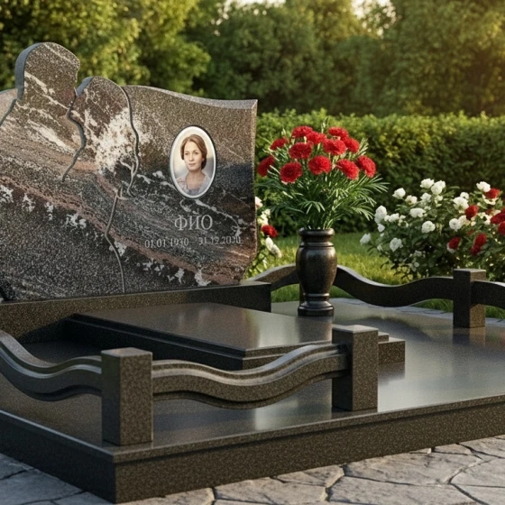 Кому подойдет: Эта мемориальная композиция идеально подходит для тех, кто ищет не просто традиционное надгробие, а произведение искусства, способное выразить глубокие чувства скорби и светлой памяти. Ее плавные, обволакивающие формы и гармоничное сочетание фактур делают ее уместной для увековечивания памяти о людях, отличавшихся мягкостью характера, душевной теплотой, творческой натурой или тех, чья жизнь была наполнена глубоким смыслом. Это достойный выбор для тех, кто ценит эстетику, качество и долговечность, стремясь создать место упокоения, которое будет излучать покой и достоинство. Мемориальная композиция доступна в 8 цветовых решениях, что позволяет подобрать камень, который наилучшим образом отразит индивидуальность и характер усопшего. Вы можете выбрать гранит амфиболит, гранит Балтик грин, гранит Блю Перл, гранит Габбро-диабаз, гранит Дымовский, гранит Лезниковский, гранит Мансуровский или мрамор Тассо, каждый из которых обладает уникальным оттенком и фактурой, позволяя создать по-настоящему персонализированный и значимый образ.
