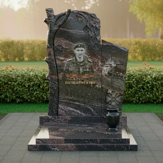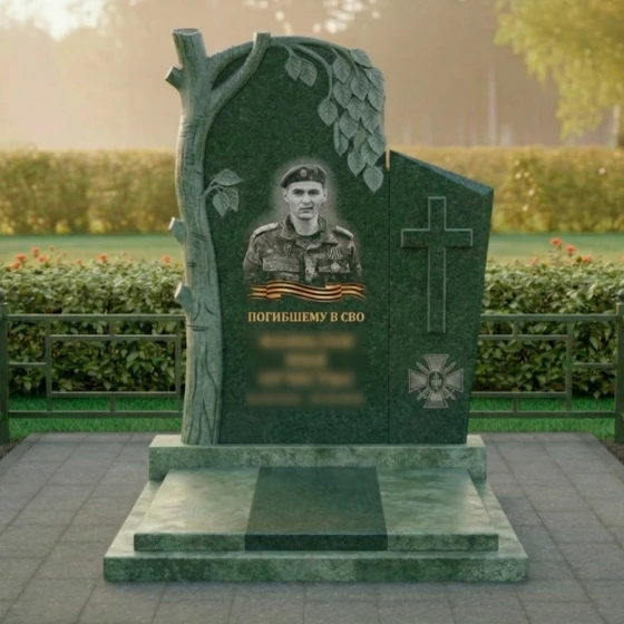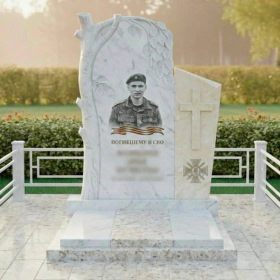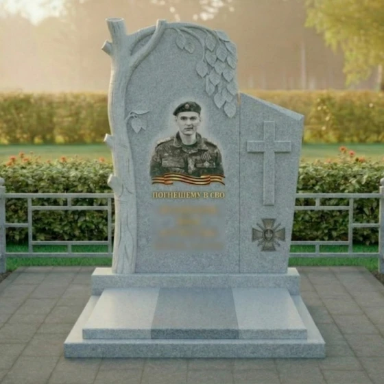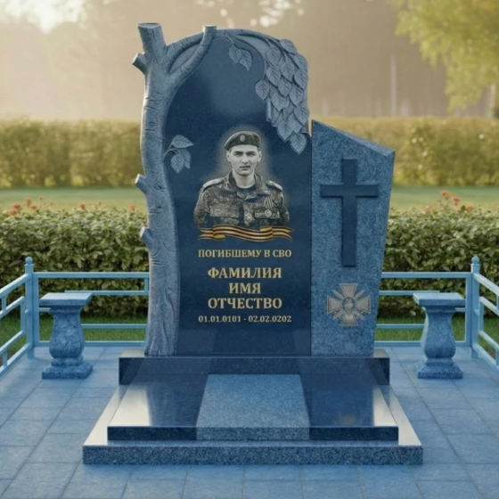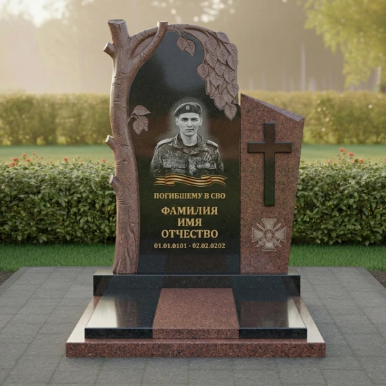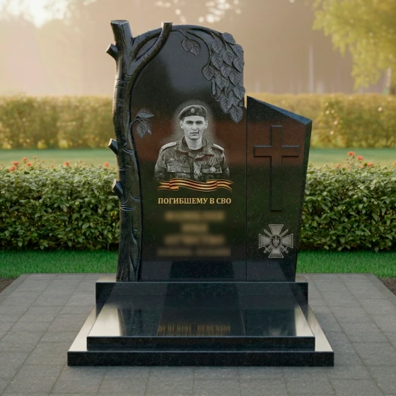 Форма этого надгробия наполнена глубокими смыслами. Береза в славянской культуре традиционно считается символом чистоты души, родины и вечного обновления природы. Она словно оберегает покой ушедшего, склоняя свои ветви в немом почтении. Сочетание природного мотива с четким геометрическим блоком, несущим крест, олицетворяет единство земного и небесного. Эта модель создана для тех, кто прожил яркую, достойную жизнь, сохранив верность своим идеалам и долгу.