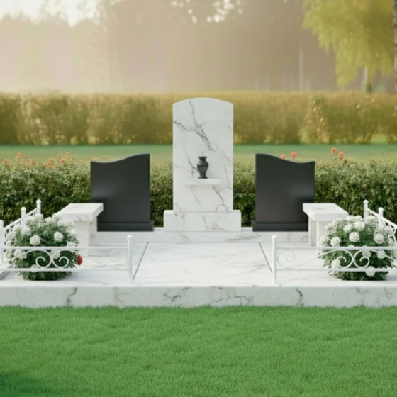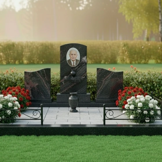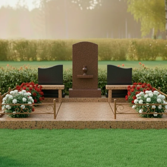 Выбирая эту модель, вы получаете не просто надгробие, а законченное художественное произведение, которое станет достойным выражением вашей любви, уважения и вечной памяти. Этот комплекс объединяет в себе эстетику современного дизайна и надежность природного камня, создавая атмосферу умиротворения и светлой грусти на месте последнего упокоения дорогих вам людей.