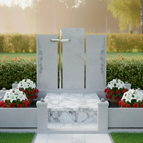 Архитектура триптиха в мемориальном искусстве традиционно символизирует Святую Троицу, а также неразрывную связь между поколениями — прошлым, настоящим и будущим. Вертикальная направленность всех элементов подчеркивает устремленность души к высшим сферам, в то время как массивная нижняя часть олицетворяет земную опору и незыблемость памяти. Лаконичный крест выступает как символ веры, надежды и смирения. Весь ансамбль вызывает чувство защищенности и торжественного покоя, превращая участок в завершенное художественное произведение.