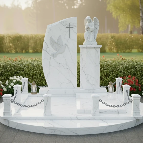 Художественная резьба и игра контрастов между полированным камнем и белоснежной скульптурой создают монумент, достойный самой светлой памяти. Это воплощение любви и уважения, застывшее в благородном граните, которое сохранит историю семьи для будущих поколений.
