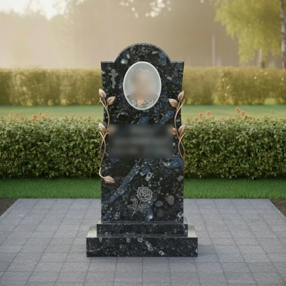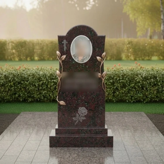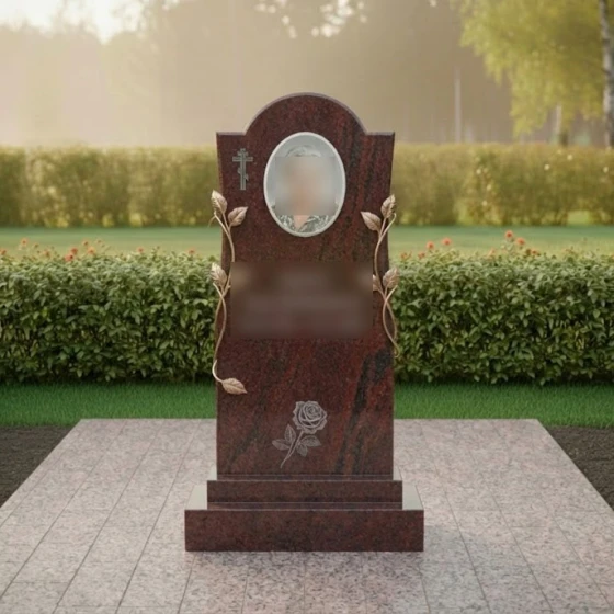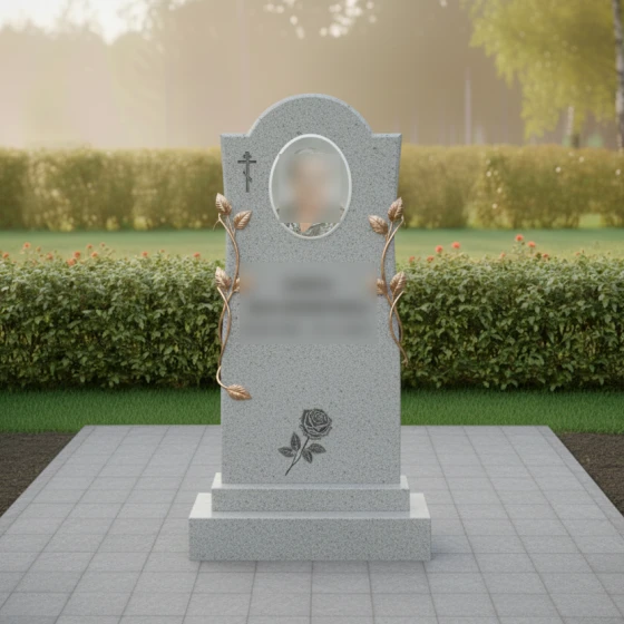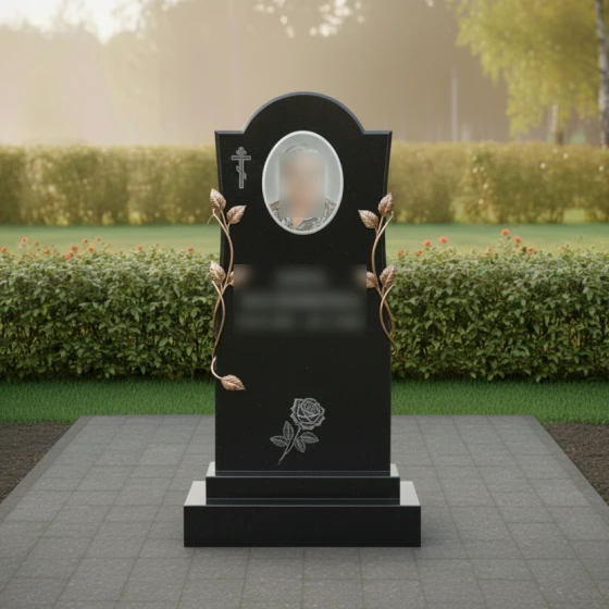 Конструкция стелы предусматривает идеальное место для размещения овального керамического портрета в верхней трети памятника. Такое расположение является композиционно оправданным: оно находится на уровне глаз и акцентирует внимание на лике ушедшего человека. Текстовый блок (ФИО и даты) располагается непосредственно под ветвями роз, что позволяет сохранить баланс между информативностью и эстетикой.