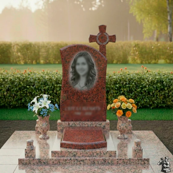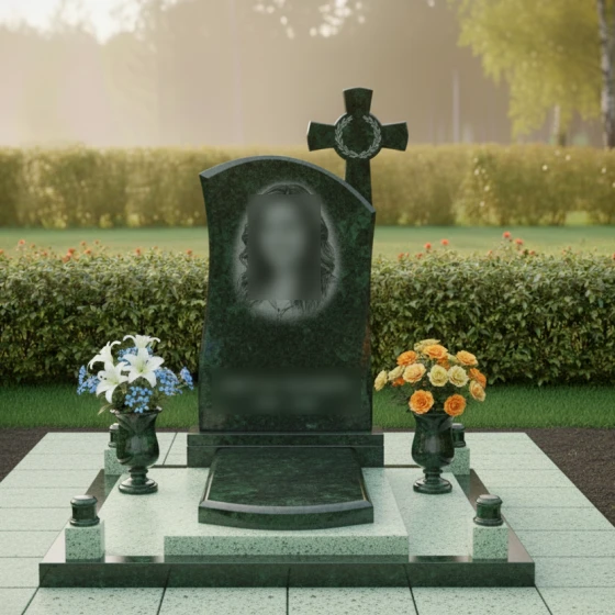 - Комплектация: Стела, постамент, сплошная надгробная плита, система декоративных столбиков, две вазы из аналогичного материала.