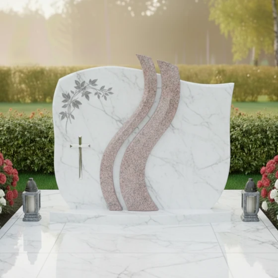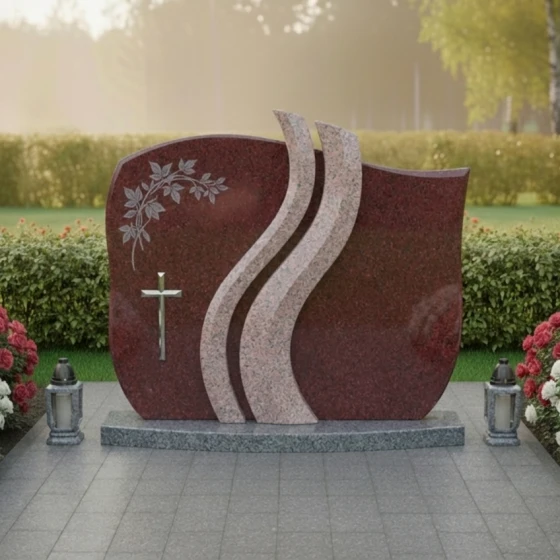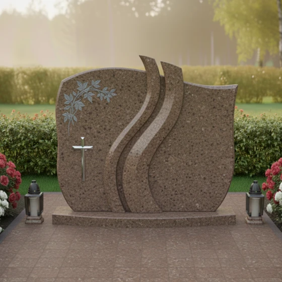 Форма стелы ПН 701 глубоко символична. Плавные линии и изгибы олицетворяют покой и умиротворение, напоминая о цикличности жизни и естественном течении времени. Две переплетающиеся ленты в центре композиции могут быть истолкованы как символ двух судеб, навсегда связанных невидимыми нитями любви и памяти, или как путь души к вечности. Гравировка ветви дерева символизирует жизнь, рост и продолжение, а также связь с природой и земным миром. Крест, как вечный символ веры, придает композиции духовную глубину и защиту. Весь облик памятника излучает чувство защищенности и незыблемости, создавая умиротворяющее пространство для воспоминаний.