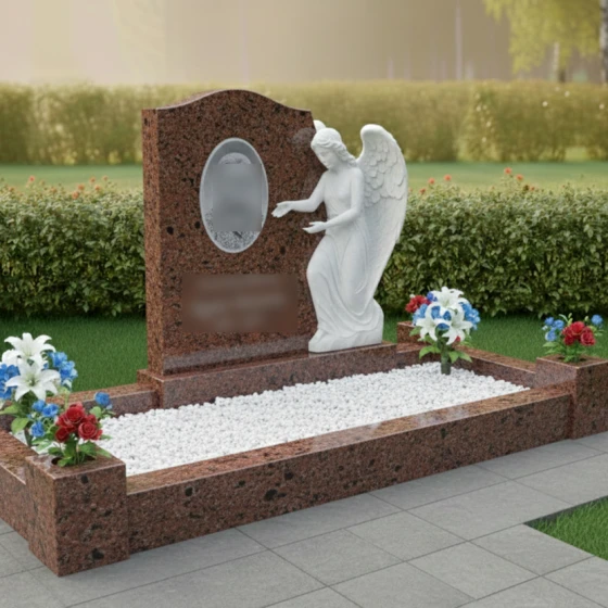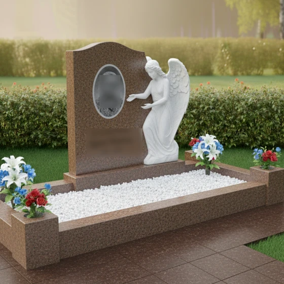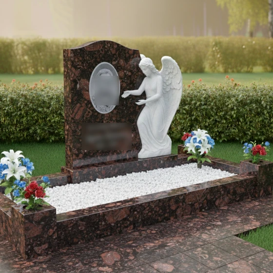 Кому подойдет: Эта модель является универсальным и в то же время глубоко личным выбором. Благодаря фигуре ангела, она идеально подходит для оформления женских захоронений (матери, жены, дочери), символизируя чистоту души и бесконечную любовь. Однако, строгость гранитных форм и массивность цоколя позволяют устанавливать этот комплекс и на семейных участках, где требуется создать атмосферу защищенности, покоя и незыблемой памяти, которая будет передаваться из поколения в поколение.