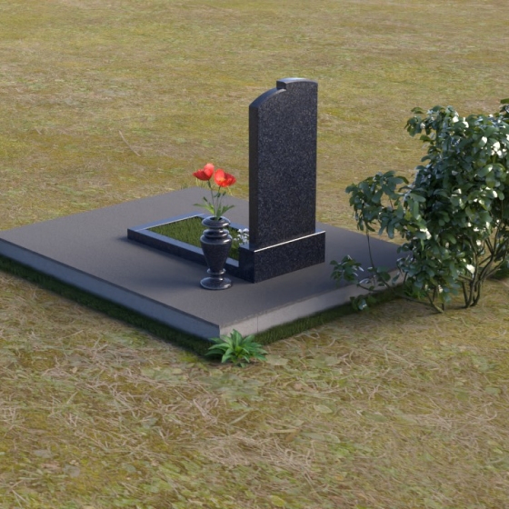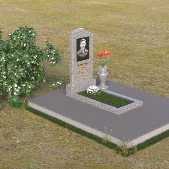 Геометрия модели продумана до мельчайших деталей. Начиная с основания, мы видим широкую плиту, обеспечивающую устойчивость всей конструкции. На ней возвышается горизонтальная плита меньшего размера, выполненная в зеркальной полировке, отражающая небо и окружающий мир, словно запечатлевая в себе мгновения жизни. Вертикальная стела, возвышающаяся над плитой, имеет сглаженные углы и плавные переходы, смягчающие строгость формы. Верхняя часть стелы, с ее деликатными сколами, придает ей уникальность и неповторимость. Рядом со стелой располагается небольшая ваза, выполненная в том же стиле, предназначенная для живых цветов, символизирующих вечную память и любовь.