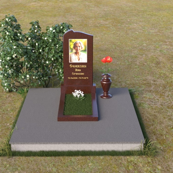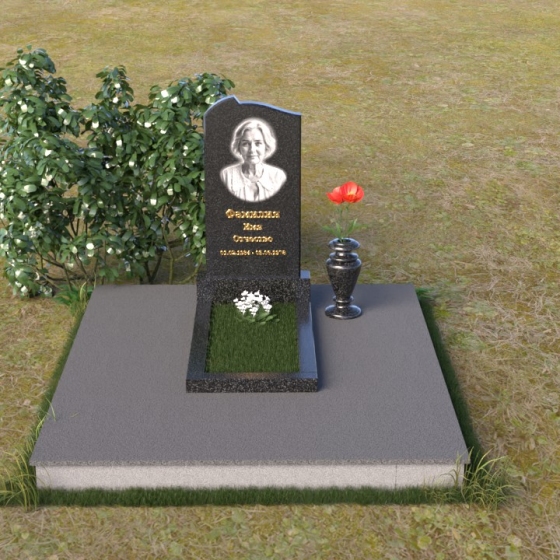Форма арки, использованная в верхней части стелы, символизирует небесный свод, защиту и покровительство высших сил. Она создает ощущение покоя и умиротворения, напоминая о вечном пристанище души. Прямоугольное основание, напротив, олицетворяет земную твердь, незыблемость памяти и преемственность поколений. Сочетание этих двух форм создает гармоничный образ, объединяющий земное и небесное, временное и вечное. Зеркальная полировка камня символизирует чистоту помыслов и искренность чувств, которые испытывают близкие к ушедшему. Этот памятник – не просто знак скорби, а символ надежды и веры в бессмертие души.