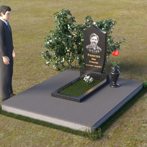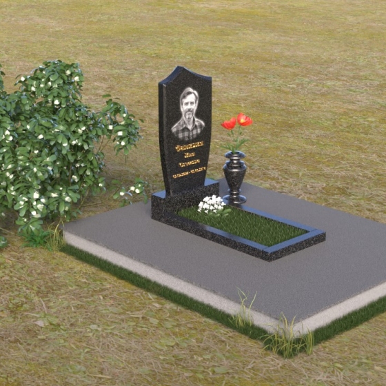 Оформление: Для данной формы стелы идеально подойдет гравировка портрета усопшего в верхней части. Имя, отчество, фамилию и даты жизни можно разместить ниже портрета, используя строгий, лаконичный шрифт. Золотое напыление букв создаст элегантный контраст с черным гранитом и подчеркнет важность информации.