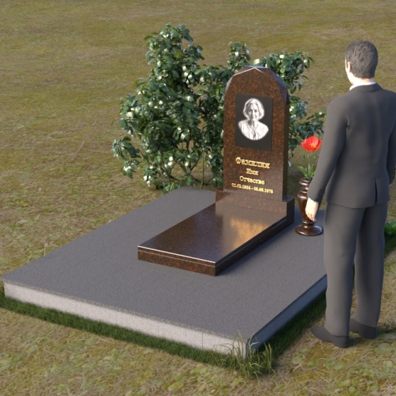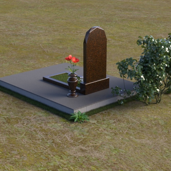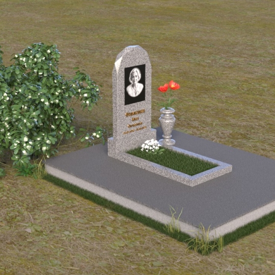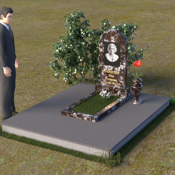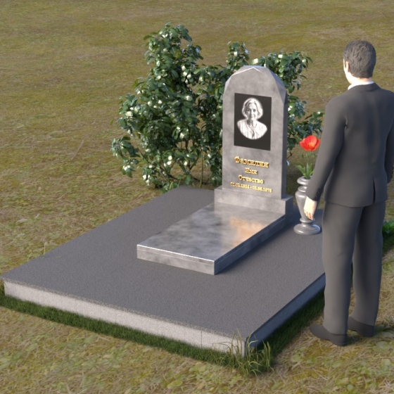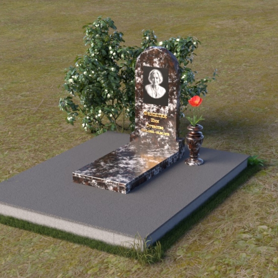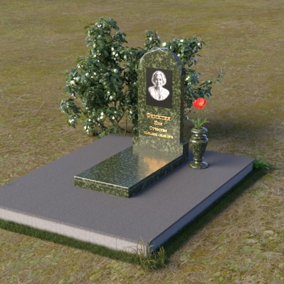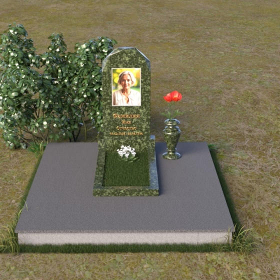 Форма стелы ПВ 069 предоставляет прекрасные возможности для размещения портрета и памятной надписи. Изображение можно расположить в верхней части стелы, где оно будет хорошо освещено и заметно. Золотое тиснение имени и дат жизни на темном фоне гранита создает элегантный контраст и добавляет торжественности. Вертикальное расположение текста гармонично сочетается с формой стелы и позволяет разместить достаточное количество информации, чтобы выразить всю глубину вашей любви и скорби. Рядом со стелой можно установить небольшую вазу для цветов, которая станет символом неувядающей памяти и заботы. Маленькая гранитная плита, расположенная перед стелой, может служить местом для возложения венков или памятных вещей.
