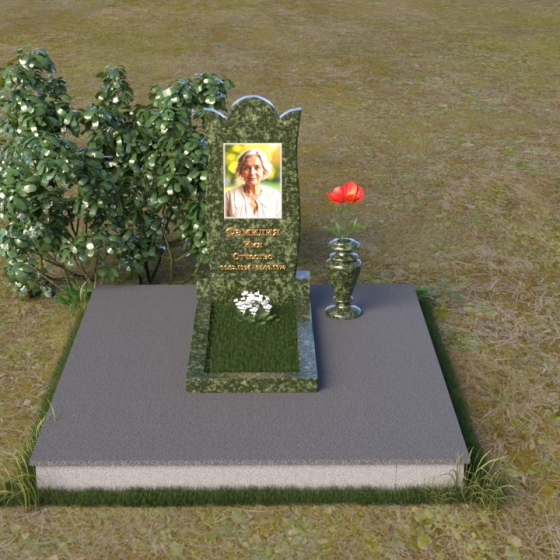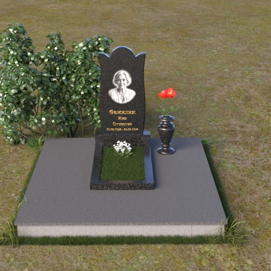 Форма стелы ПВ 070 предоставляет широкие возможности для оформления. Портрет усопшего идеально впишется в верхнюю часть композиции, а золотые буквы имени и дат жизни будут контрастно выделяться на фоне черного гранита, создавая ощущение тепла и света. Расположение портрета в овале или прямоугольнике – выбор за вами, в зависимости от личных предпочтений и стиля фотографии. Зеркальная поверхность камня создаст эффект глубины и объема, делая портрет более выразительным и живым. Дополнительно, у основания стелы можно установить небольшую вазу для цветов, которые станут символом вашей вечной любви и памяти. Небольшая тумба, выполненная в том же стиле и из того же материала, что и стела, завершит общую композицию и придаст ей законченный вид.